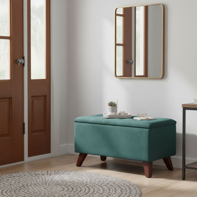 Σκαμπώ - Ταμπουρέ Lotus βελούδινο χρώμα κυπαρισσί 90x40x50εκ.