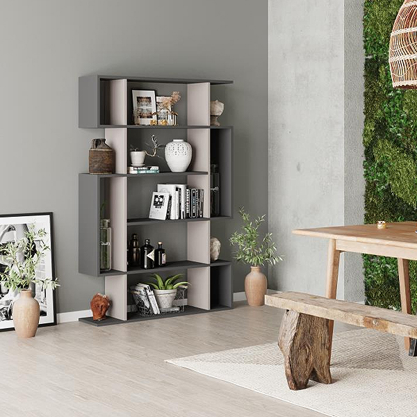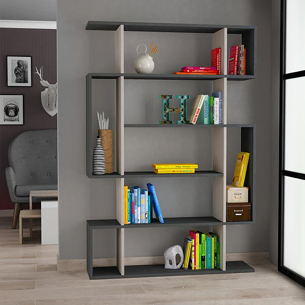 Βιβλιοθήκη Mito χρώμα ανοιχτή μόκα - ανθρακί 108x25x161εκ.