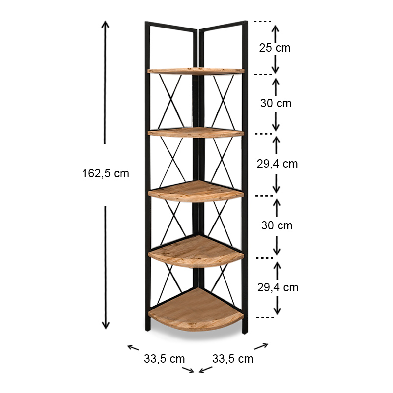 Βιβλιοθήκη γωνιακή Kelsie χρώμα μαύρο - pine oak 33x33x162εκ.