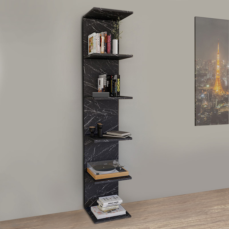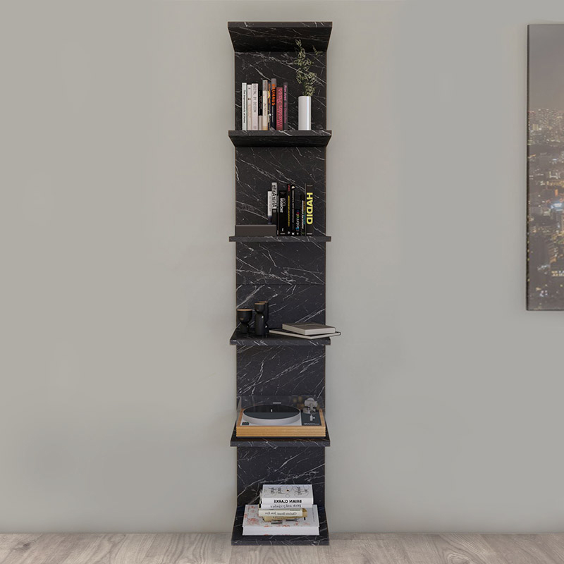 Βιβλιοθήκη - Ραφιέρα τοίχου Ogden χρώμα μαύρο εφέ μαρμάρου 34,5x30x180εκ.