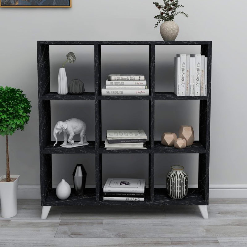 Βιβλιοθήκη Saul χρώμα μαύρο εφέ μαρμάρου 88,2x20x88,2εκ.