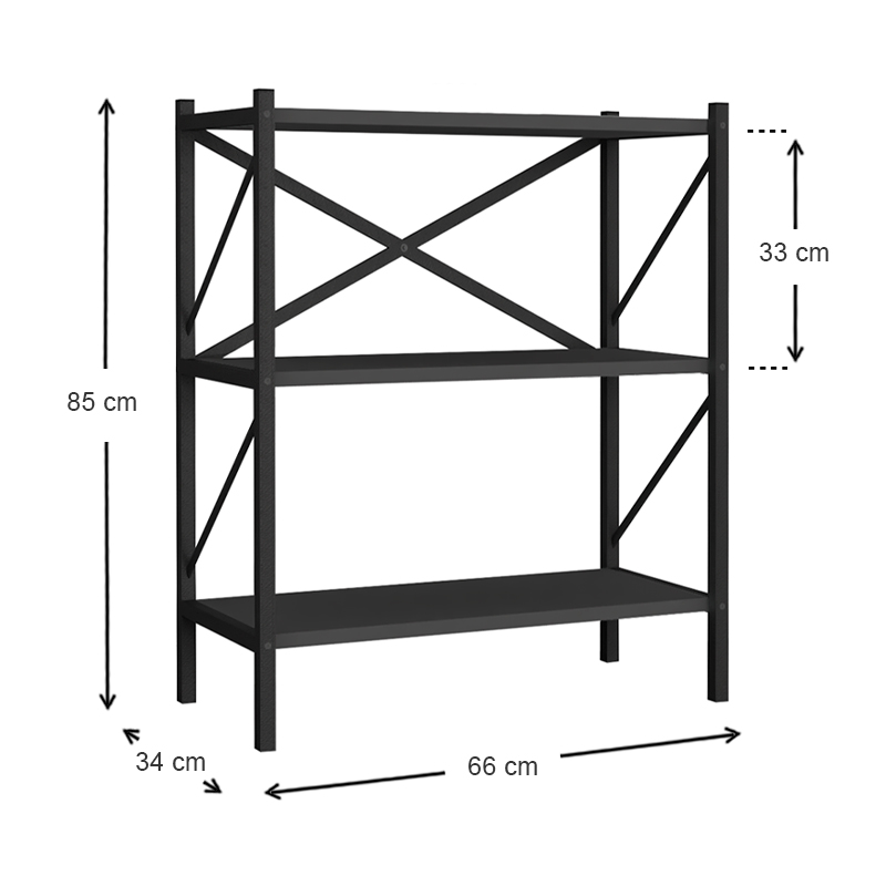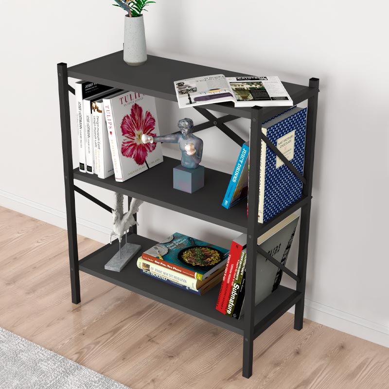 Βιβλιοθήκη Jocasta μεταλλική - μελαμίνης χρώμα ανθρακί 66x34x85εκ.