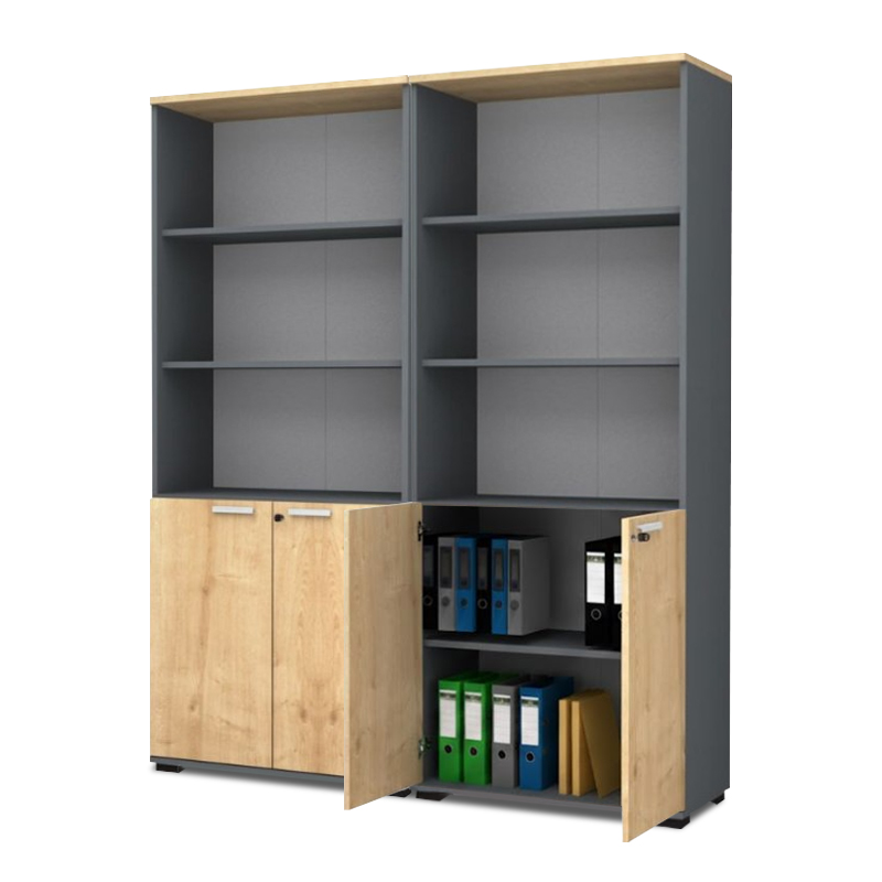 Βιβλιοθήκη γραφείου επαγγελματική Venturo χρώμα ανθρακί - φυσικό οξιάς 160x40x200εκ.