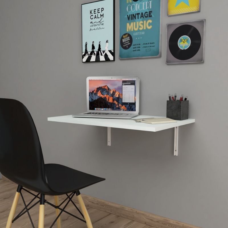 Τραπέζι κουζίνας - Γραφείο επιτοίχιο πτυσσόμενο Ravan χρώμα λευκό 72x45εκ.