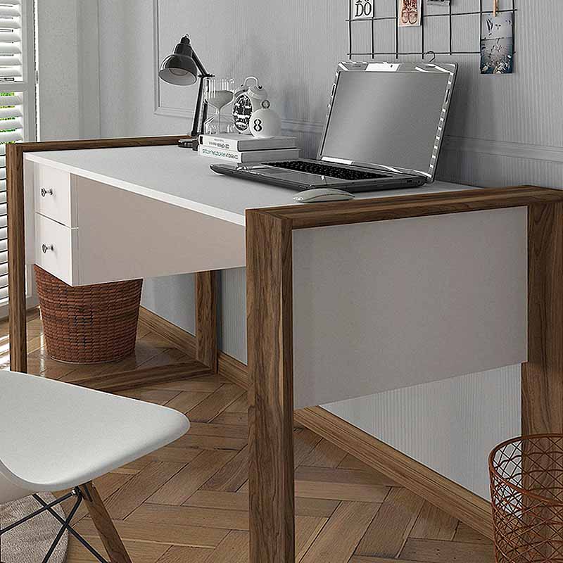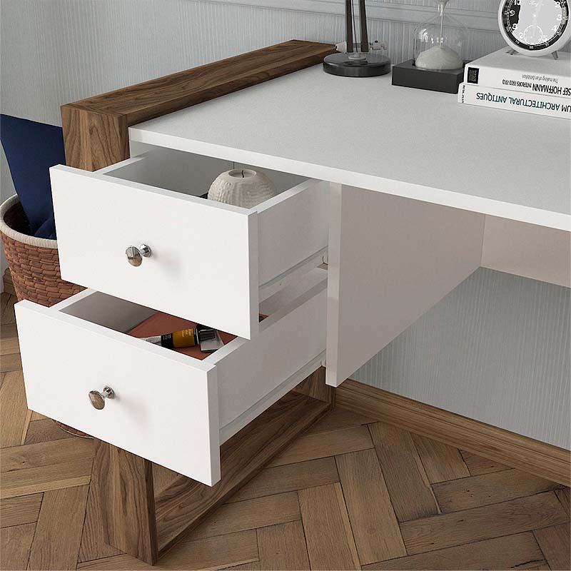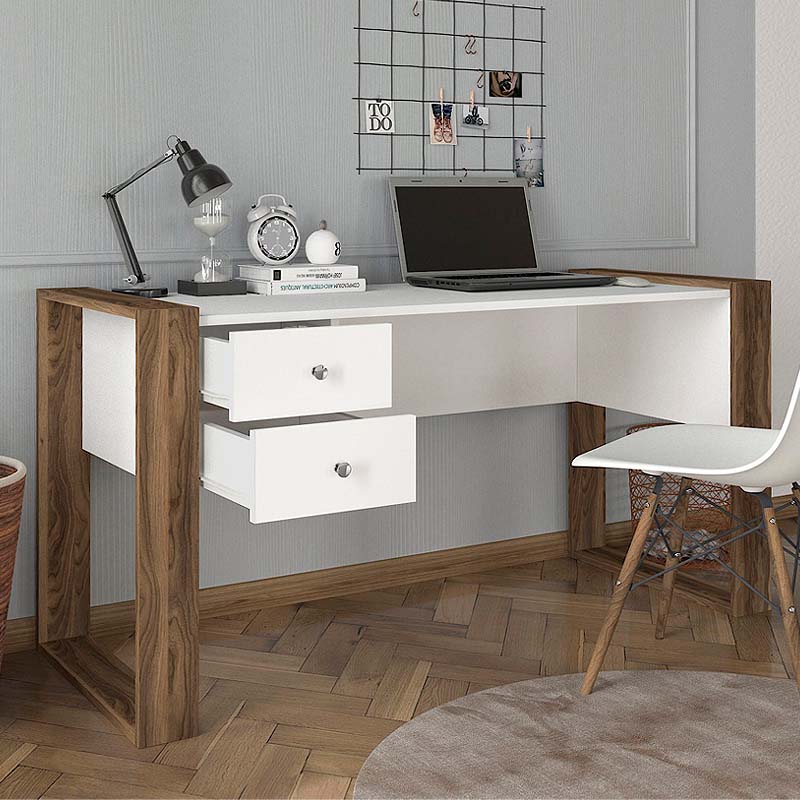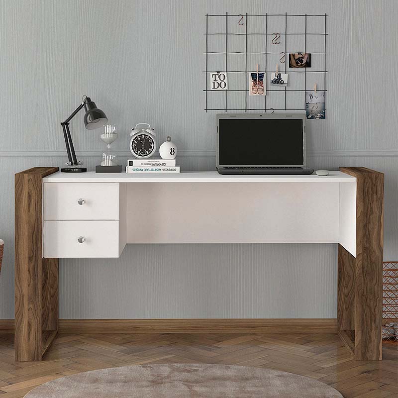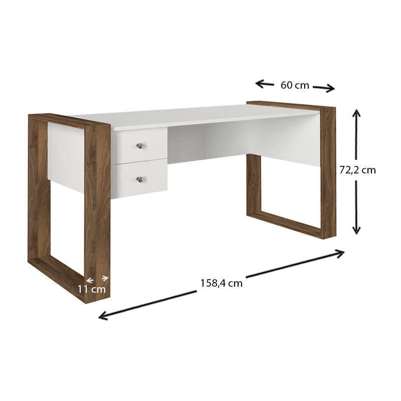 Γραφείο εργασίας Fernando χρώμα λευκό - καρυδί 158,4x60x72,2εκ.