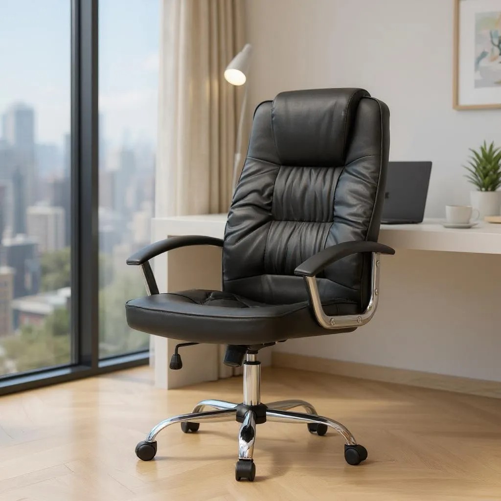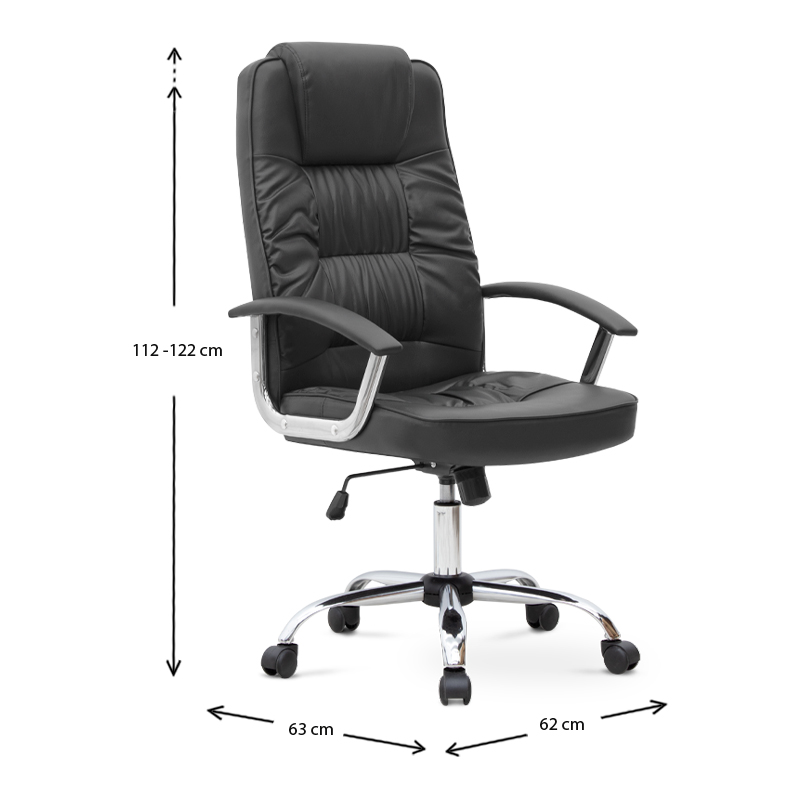 Καρέκλα γραφείου διευθυντική Arial από τεχνόδερμα χρώμα μαύρο 62x63x112/122εκ.