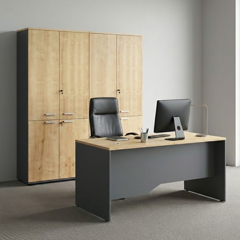 Η ντουλάπα γραφείου της σειράς Venturo προσφέρει άφθονο αποθηκευτικό χώρο για έγγραφα, φακέλους και υλικά γραφείου, με στιβαρή κατασκευή και ανθεκτικά ράφια που εξασφαλίζουν μακροχρόνια χρήση. Ο μοντέρνος σχεδιασμός και το κομψό φινίρισμά της την καθιστούν ιδανική για κάθε γραφείο που θέλει να συνδυάζει λειτουργικότητα με αισθητική. Συνδυάζεται άψογα με τα γραφεία και τις συρταριέρες της ίδιας σειράς, δημιουργώντας έναν πλήρως οργανωμένο και αρμονικό χώρο εργασίας.