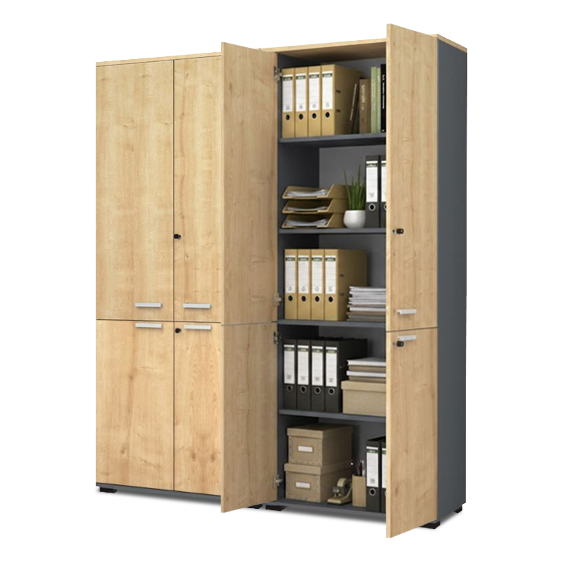 Ντουλάπα γραφείου με κλειδαριά επαγγελματική Venturo χρώμα ανθρακί - φυσικό οξιάς 160x40x200εκ.