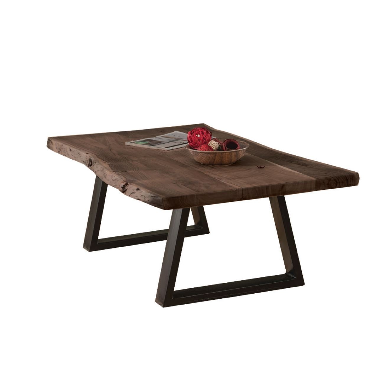 LIZARD Slim Τραπέζι Σαλονιού Καθιστικού, Μέταλλο Βαφή Μαύρο, Ξύλο Ακακία Καρυδί