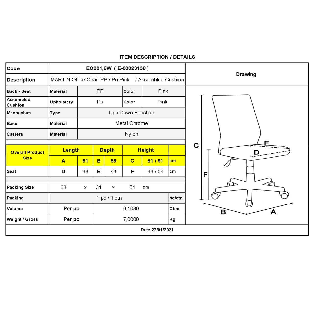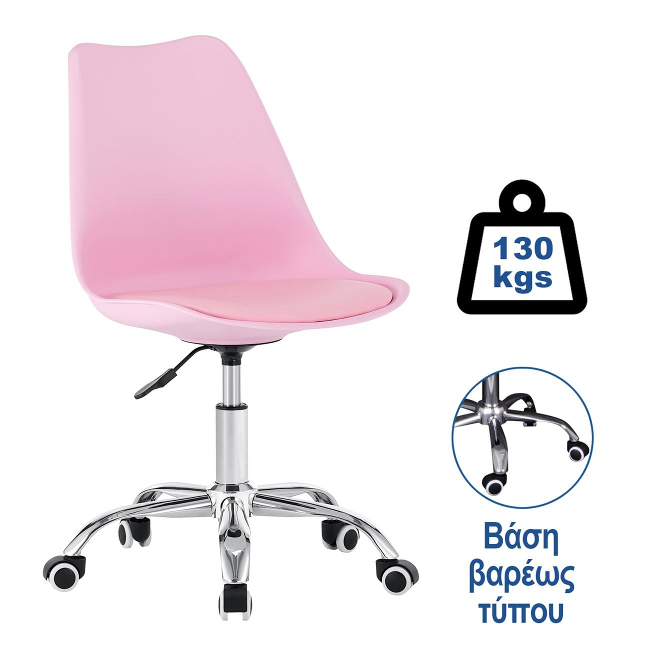 MARTIN Καρέκλα Γραφείου, Βάση Χρώμιο Βαρέως Τύπου, PP & Pu Ροζ, Μονταρισμένη Ταπετσαρία