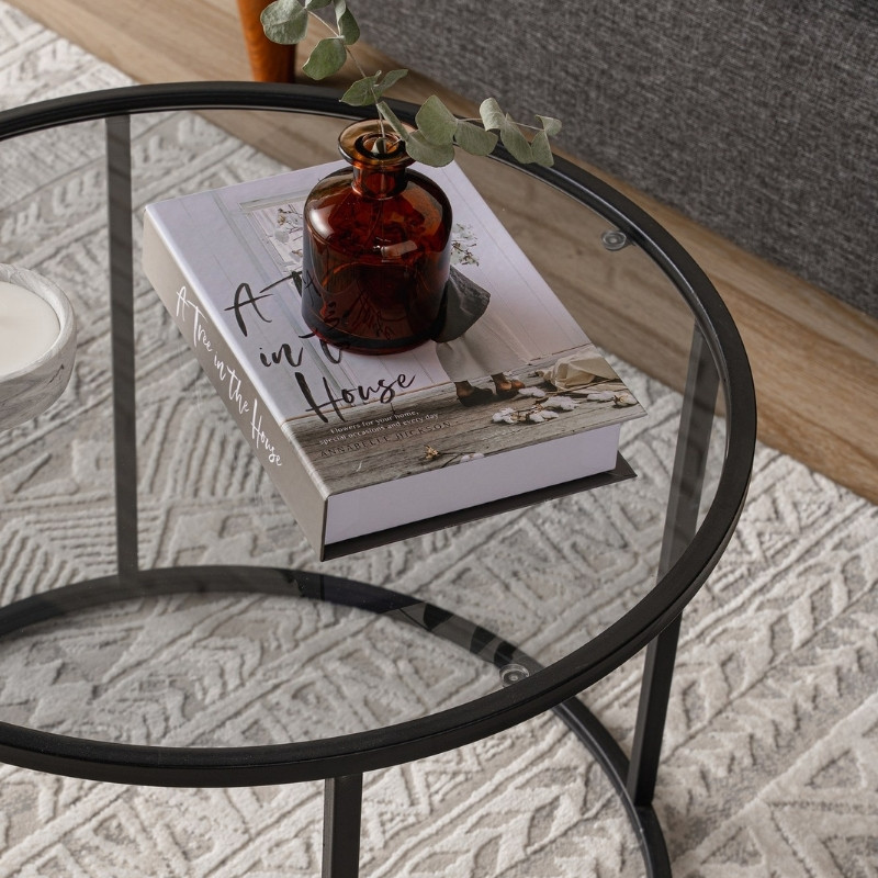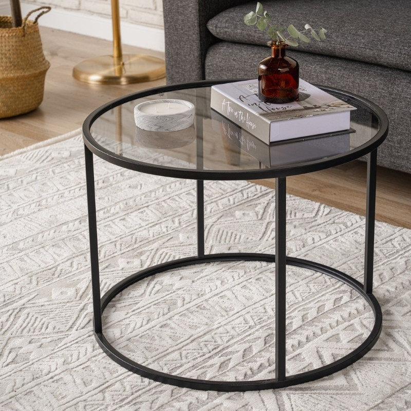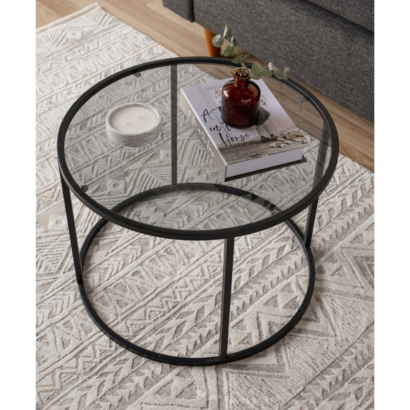 Τραπεζάκι σαλονιού Startis μέταλλο - γυαλί χρώμα μαύρο Ø60x43εκ.