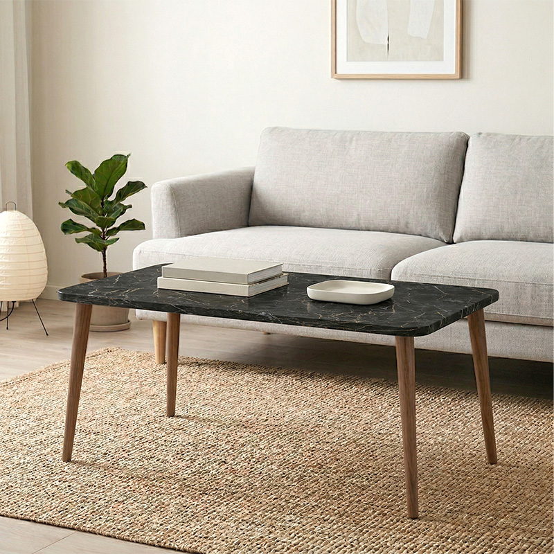 Τραπεζάκι σαλονιού Plane χρώμα μαύρο εφέ μαρμάρου 90x55x41εκ.