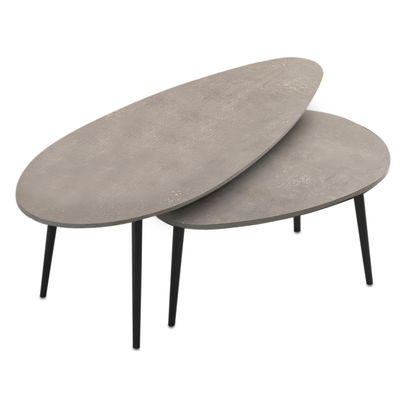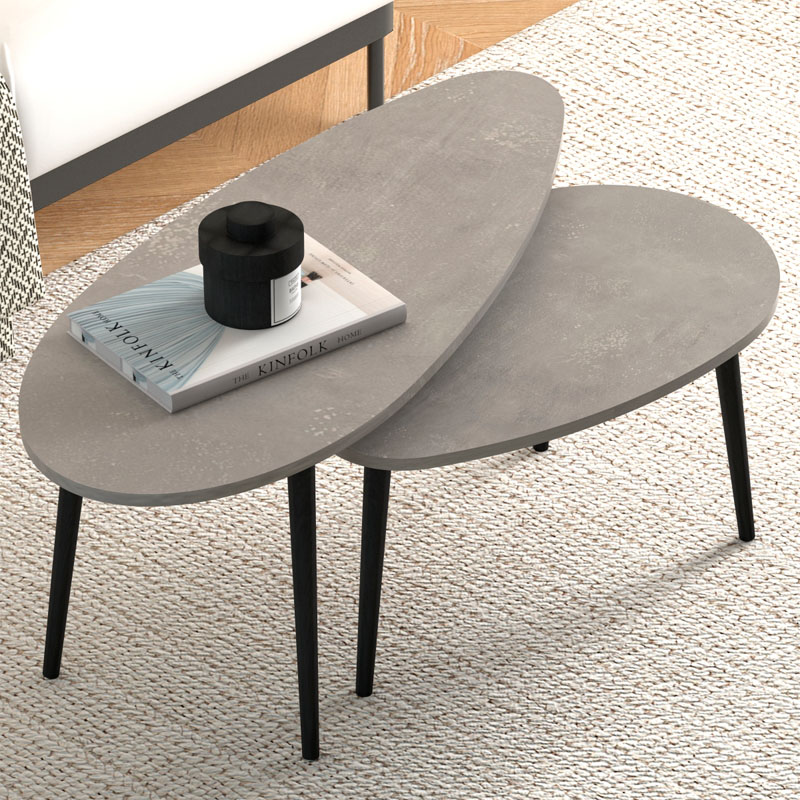 Τραπεζάκι σαλονιού σετ 2 τμχ Elips χρώμα γκρι ρετρό 116x46x46εκ.