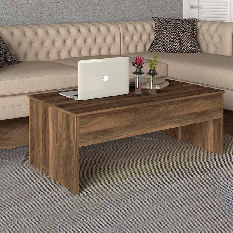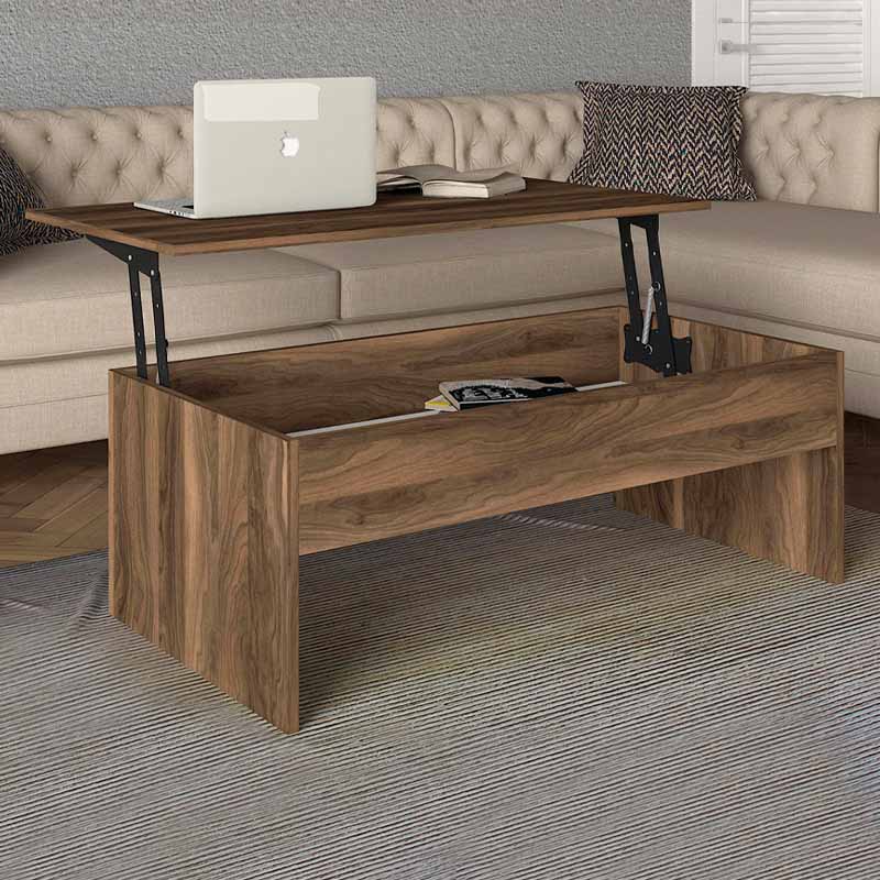 Το τραπεζάκι σαλονιού Devon διαθέτει μηχανισμό που επιτρέπει να σηκωθεί η επιφάνεια του σε θέση σερβιρίσματος για το φαγητό ή το laptop, δημιουργώντας χώρο για την αποθήκευση αντικειμένων στο εσωτερικό του.