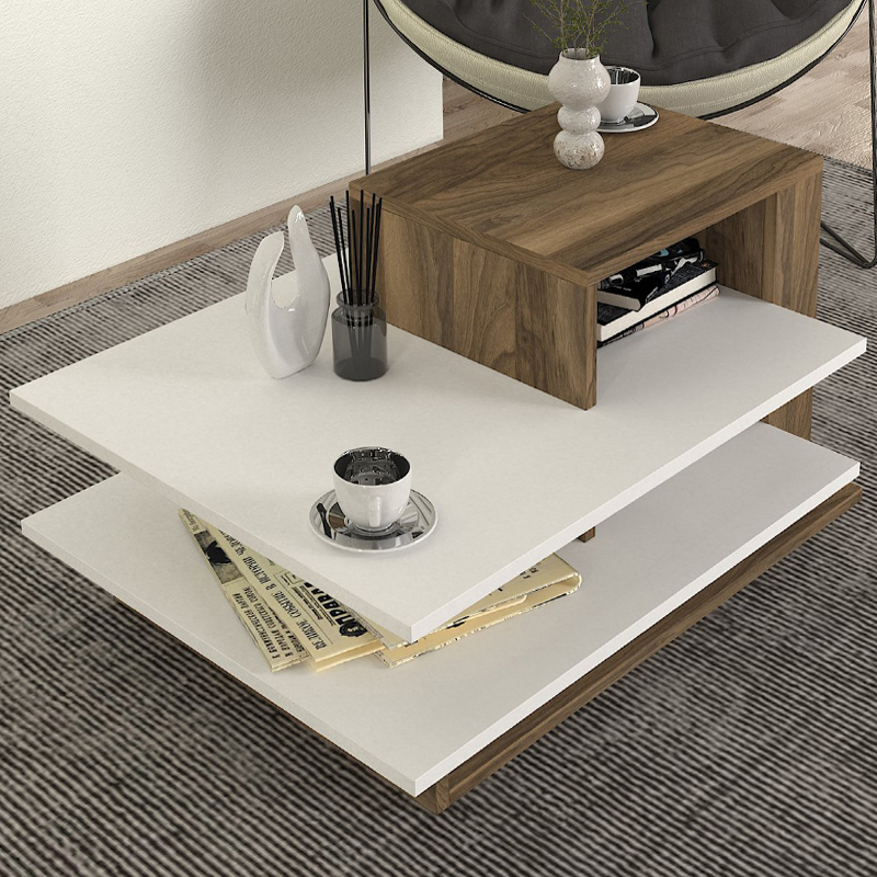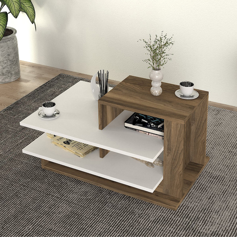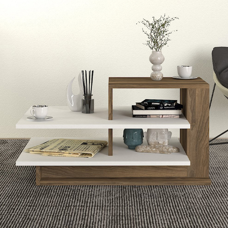 Τραπεζάκι σαλονιού Venus χρώμα λευκό - καρυδί 85x60x43,6εκ.