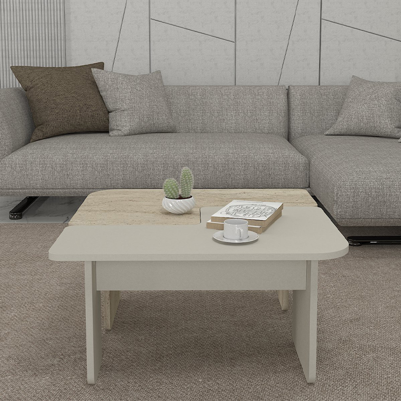 Τραπεζάκι σαλονιού σετ 2τμχ Sevilla χρώμα sandstone - travertine 75x75x37,4εκ.