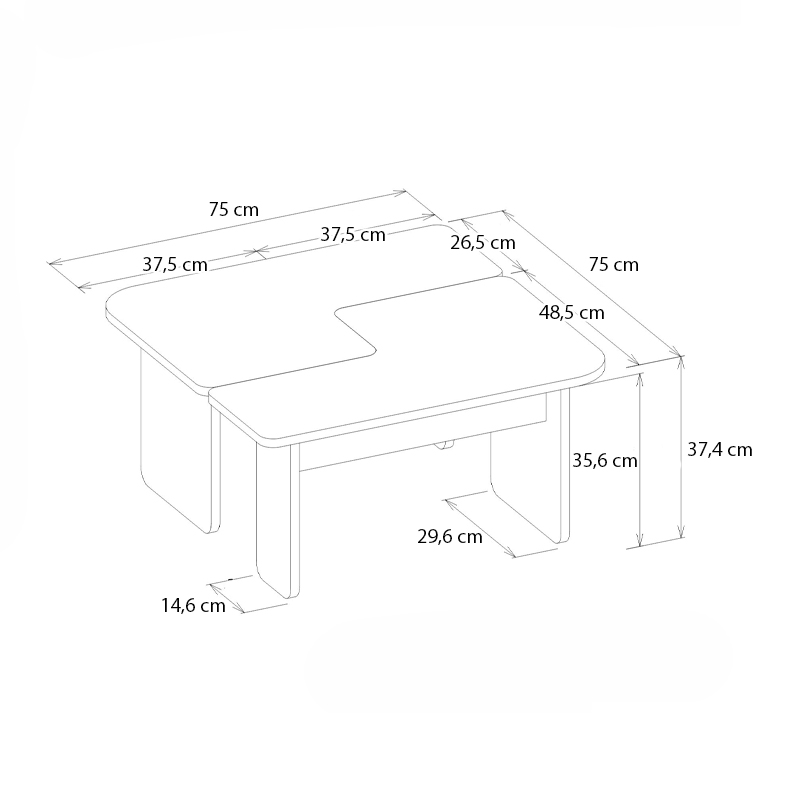 - Διαστάσεις: Μήκος 75 x Βάθος 75 x Ύψος 37,4 εκ.