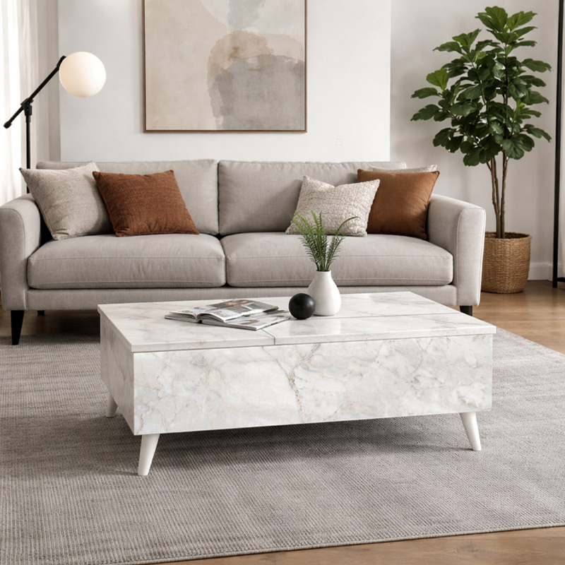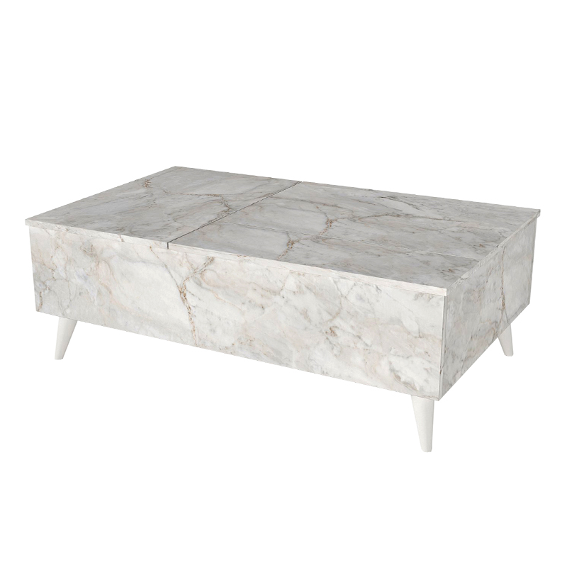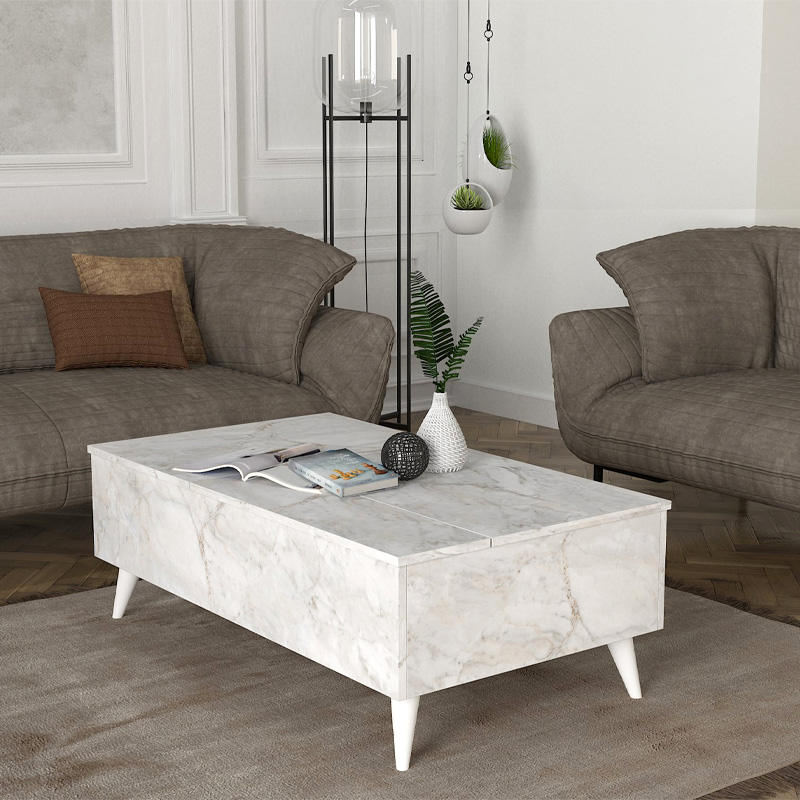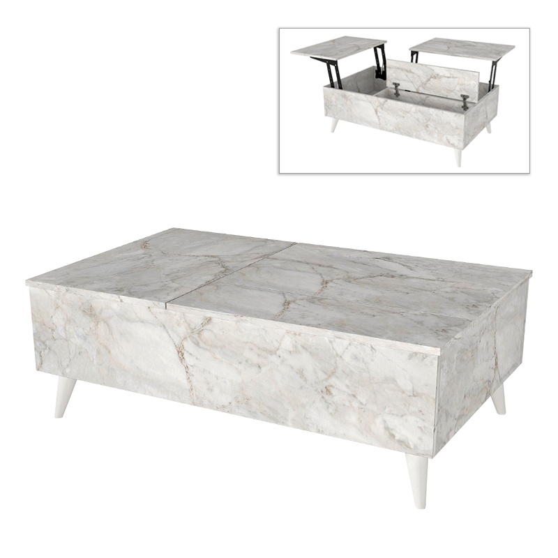 Τραπεζάκι σαλονιού Roy με σερβιτόρο χρώμα λευκό εφέ μαρμάρου 121x69x40εκ.