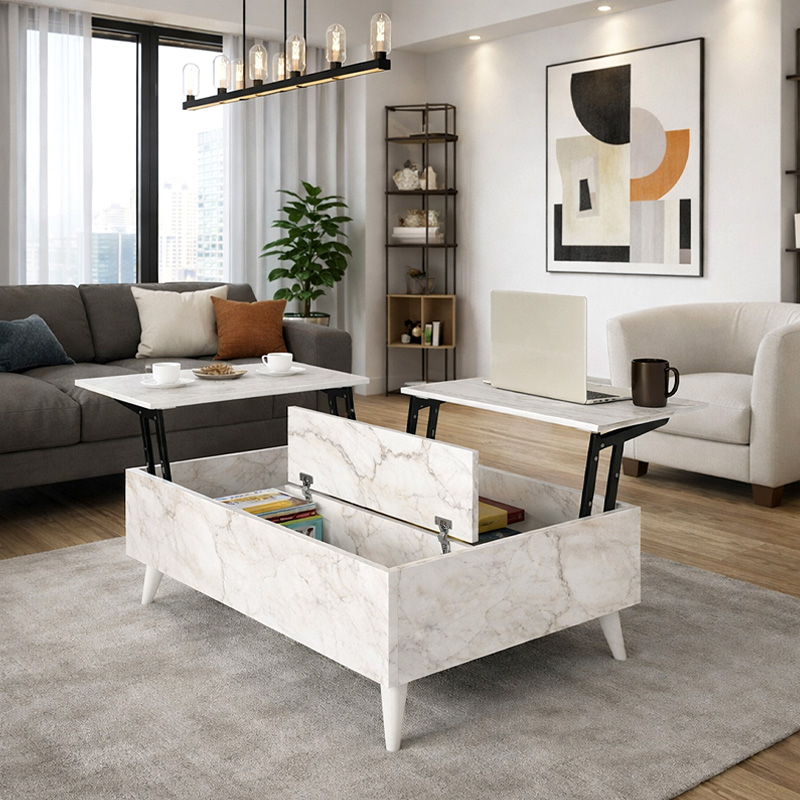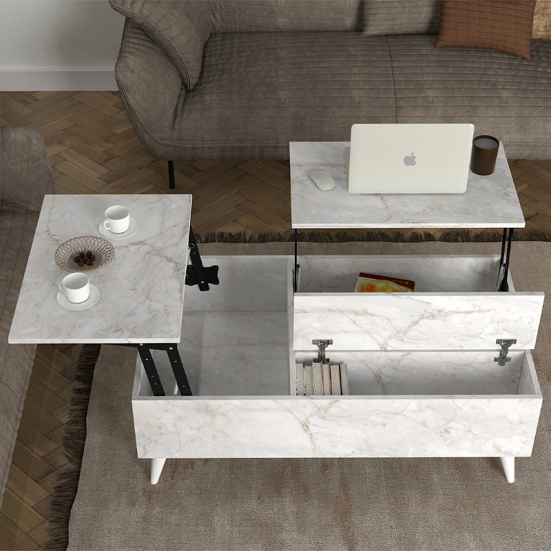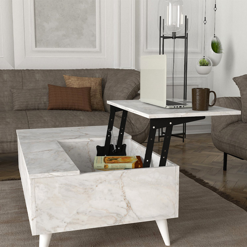 Το τραπεζάκι σαλονιού Roy διαθέτει μηχανισμό που επιτρέπει να σηκωθεί η επιφάνεια του σε θέση σερβιρίσματος για το φαγητό ή το laptop, δημιουργώντας χώρο για την αποθήκευση αντικειμένων στο εσωτερικό του.