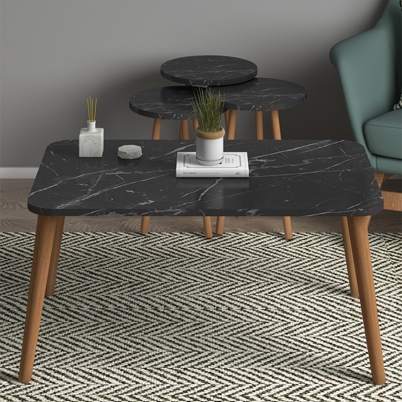 Τραπεζάκι σαλονιού σετ 4 τμχ Soul χρώμα μαύρο εφέ μαρμάρου 90x55x43εκ.