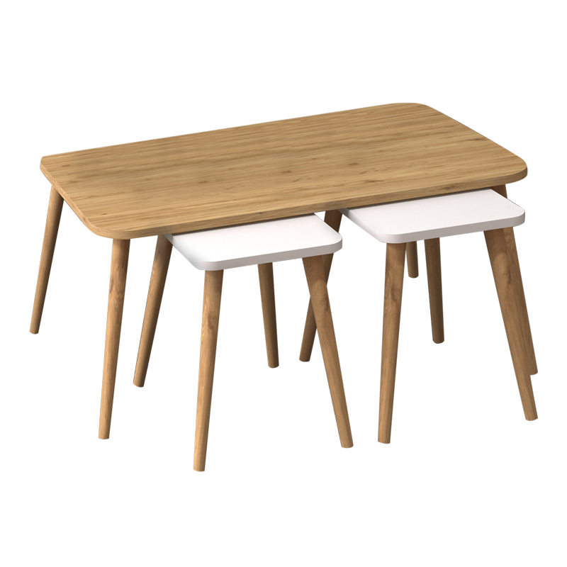 Τραπεζάκι σαλονιού σετ 3 τμχ Oliva χρώμα oak - λευκό 90x55x46εκ.