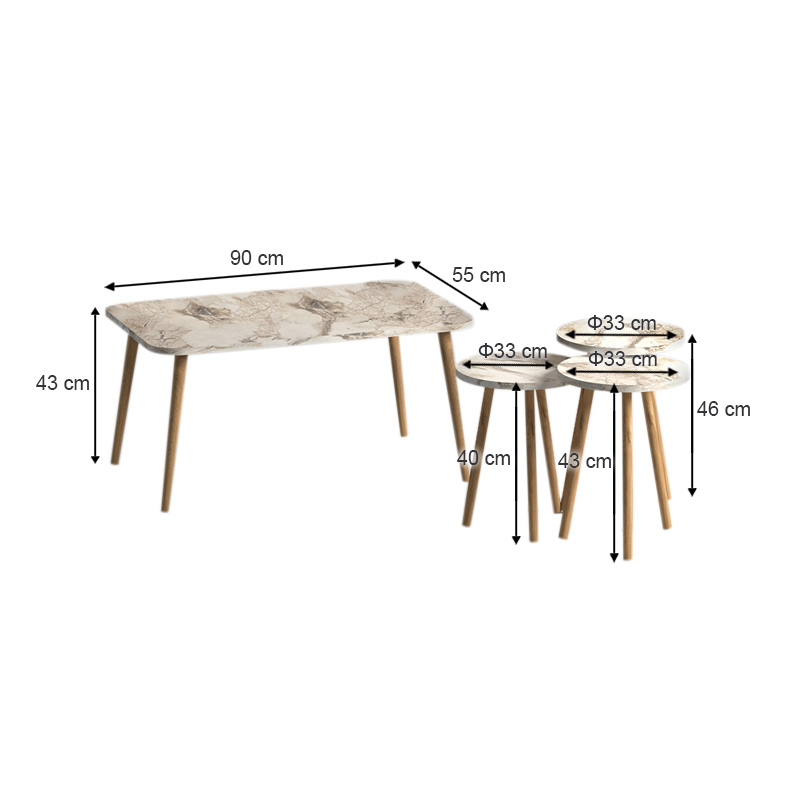 Τραπεζάκι σαλονιού σετ 4 τμχ Soul χρώμα μπεζ εφέ μαρμάρου 90x55x43εκ.