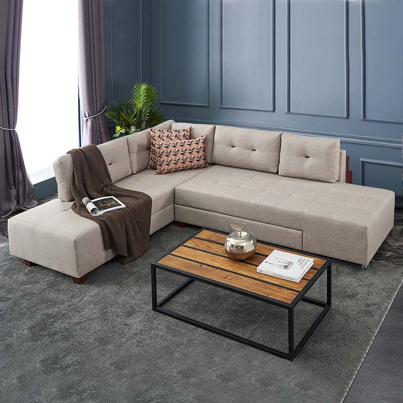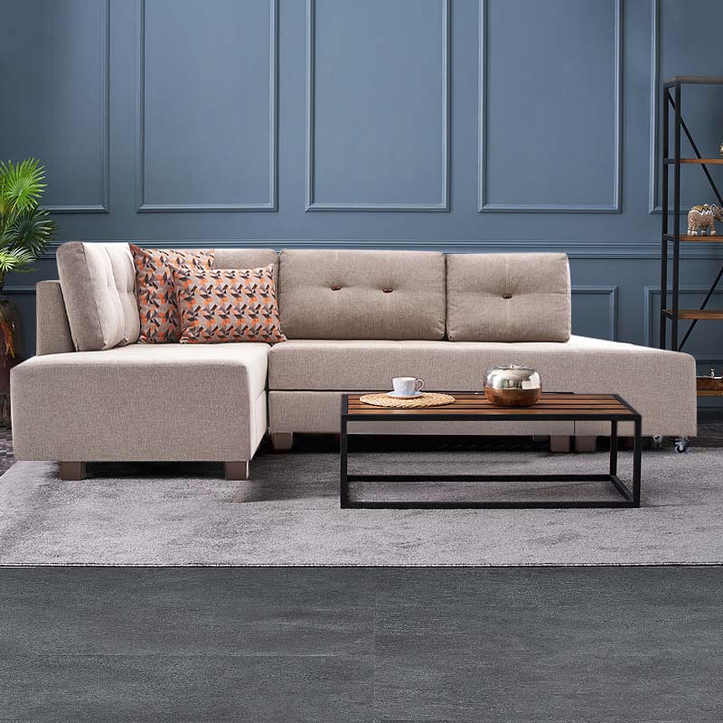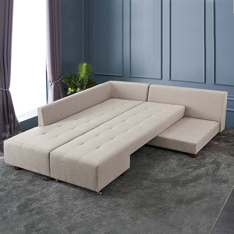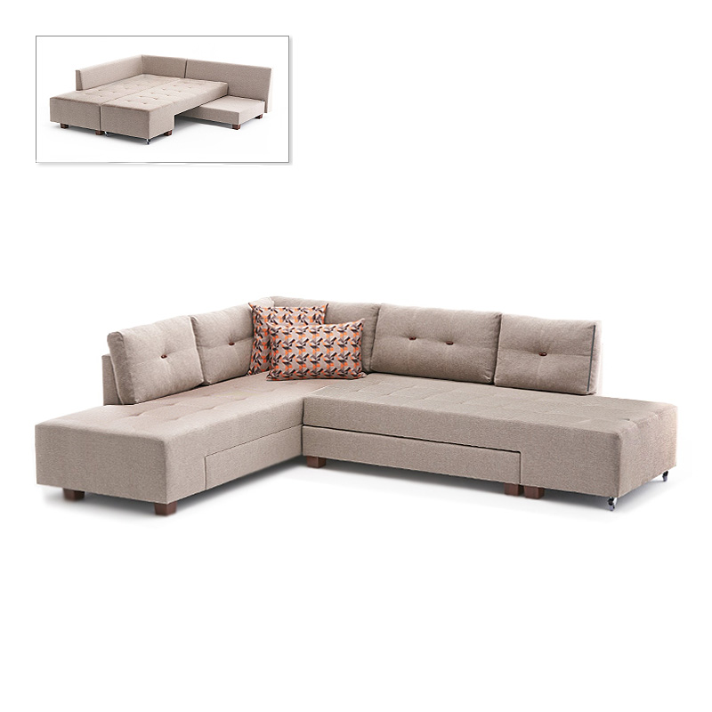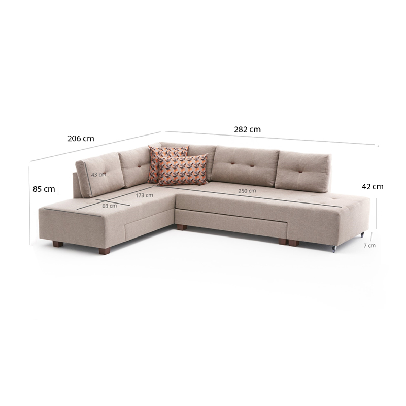 Γωνιακός καναπές - κρεβάτι Manama αριστερή γωνία υφασμάτινος χρώμα κρεμ 280x206x85εκ.