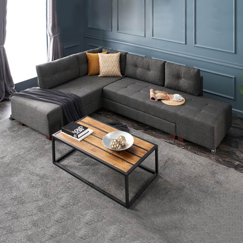 Γωνιακός καναπές - κρεβάτι Manama αριστερή γωνία υφασμάτινος χρώμα ανθρακί 280x206x85εκ.