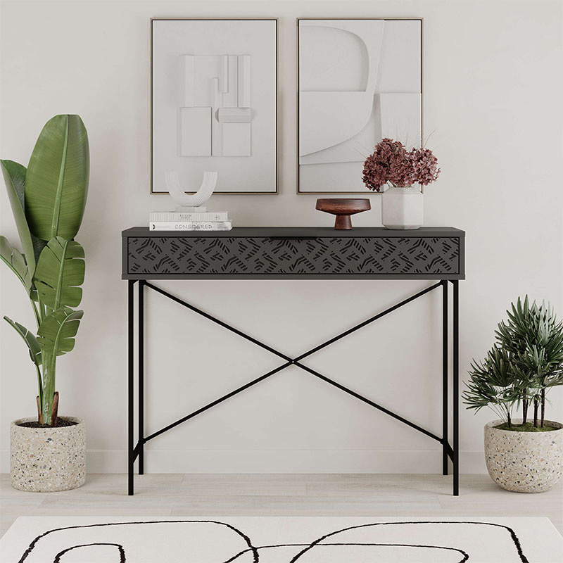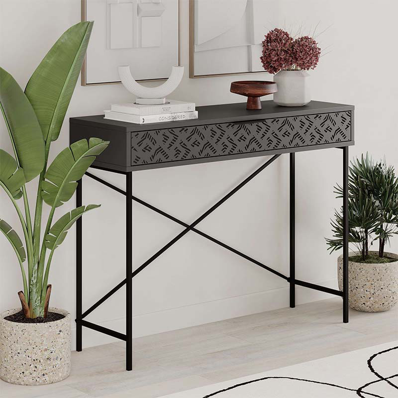 Κονσόλα Heaton μεταλλική - μελαμίνης χρώμα ανθρακί 110x35,6x90εκ.