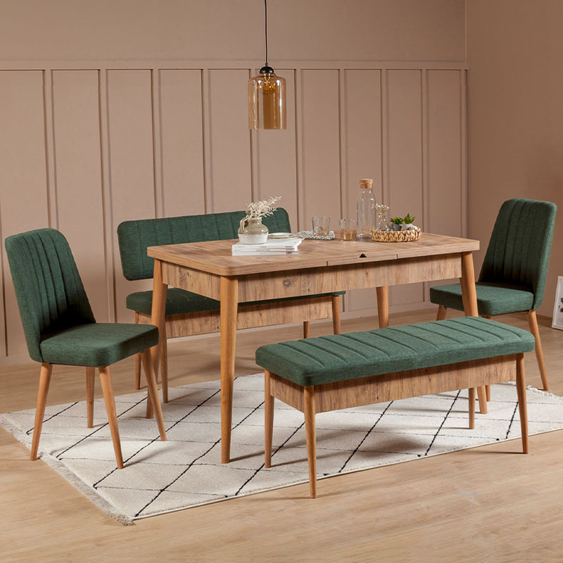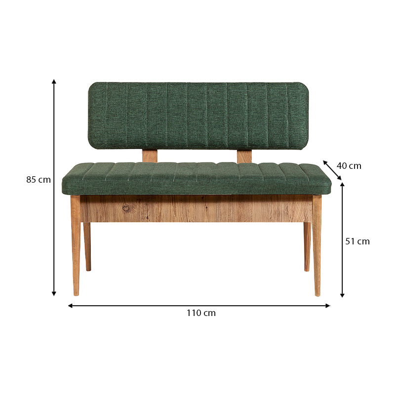 Καναπές διθέσιος - Παγκάκι Alden από μελαμίνη - ύφασμα χρώμα πράσινο 110x40x85εκ.