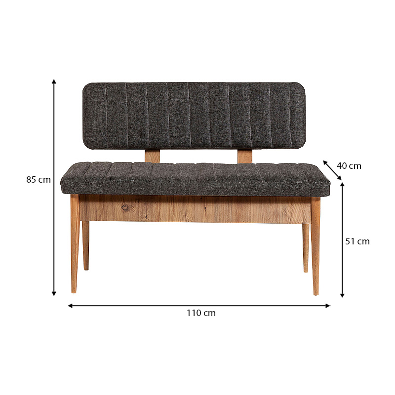 Καναπές διθέσιος - Παγκάκι Alden από μελαμίνη - ύφασμα χρώμα ανθρακί 110x40x85εκ.