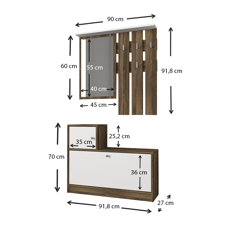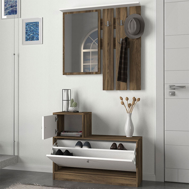 Έπιπλο εισόδου Galina χρώμα καρυδί - λευκό 91,8x27x70εκ.