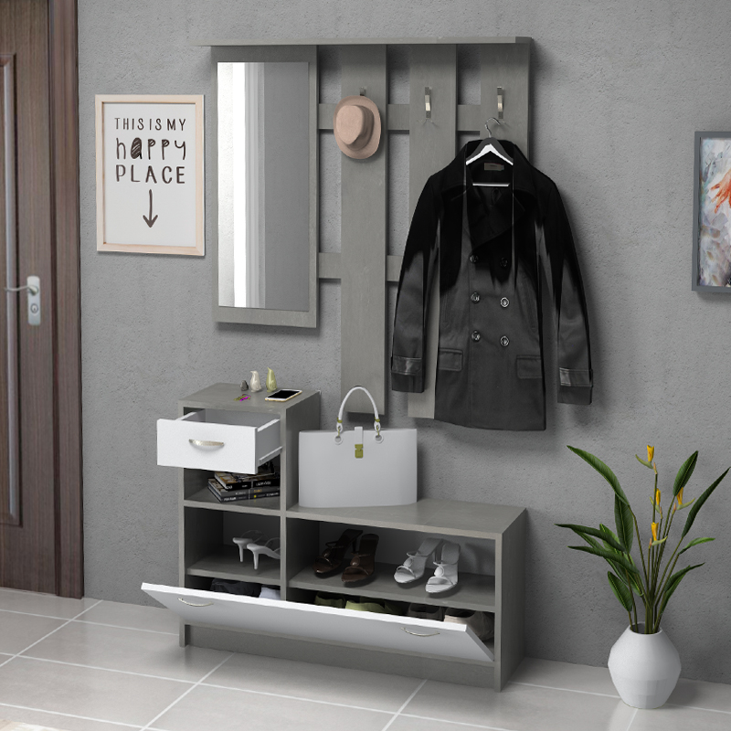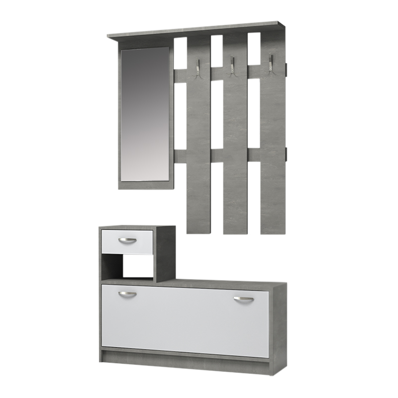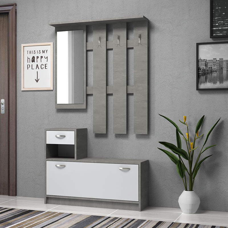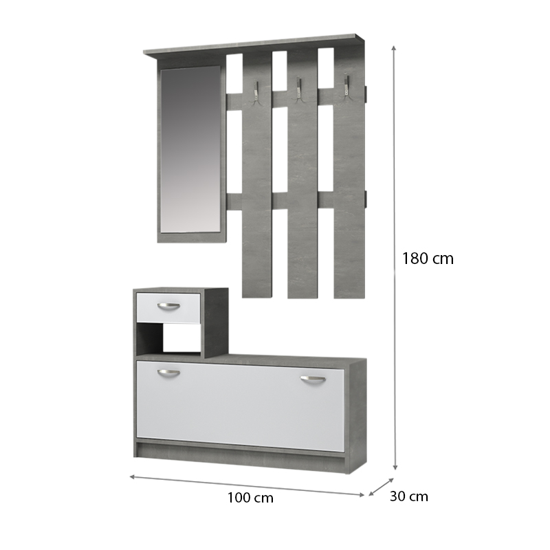 Έπιπλο εισόδου Raynold χρώμα γκρι σκυροδέματος - λευκό 100x30x180εκ.