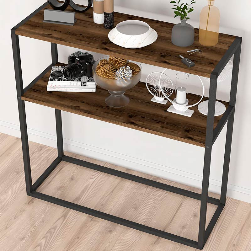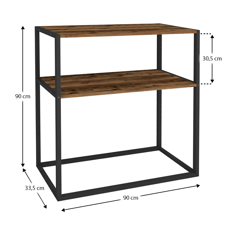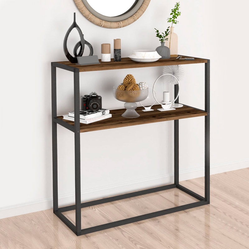 Κονσόλα Castel μεταλλική - μελαμίνης χρώμα μαύρο - καπνιστή καρυδιά 90x33,5x90εκ.