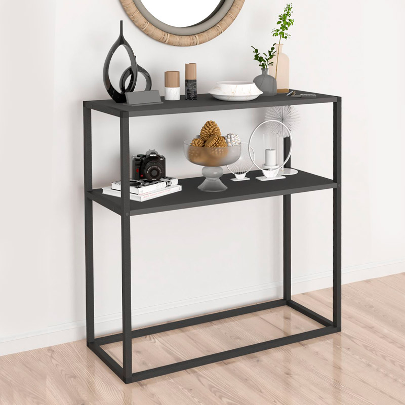 Κονσόλα Castel μεταλλική - μελαμίνης χρώμα μαύρο - ανθρακί 90x33,5x90εκ.