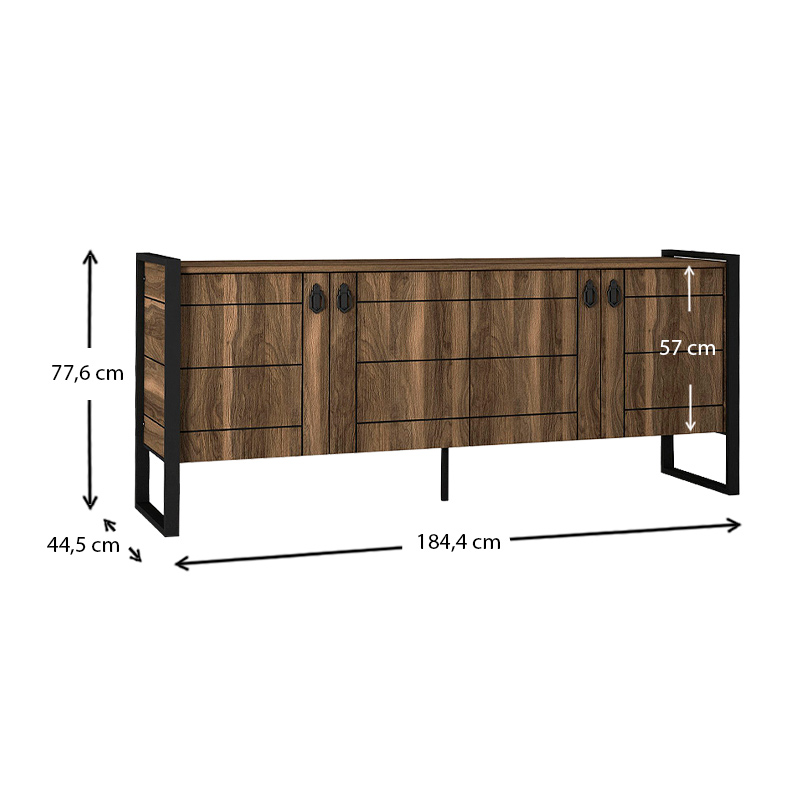 Μπουφές Ursula χρώμα καρυδί 180x40x77,6εκ.