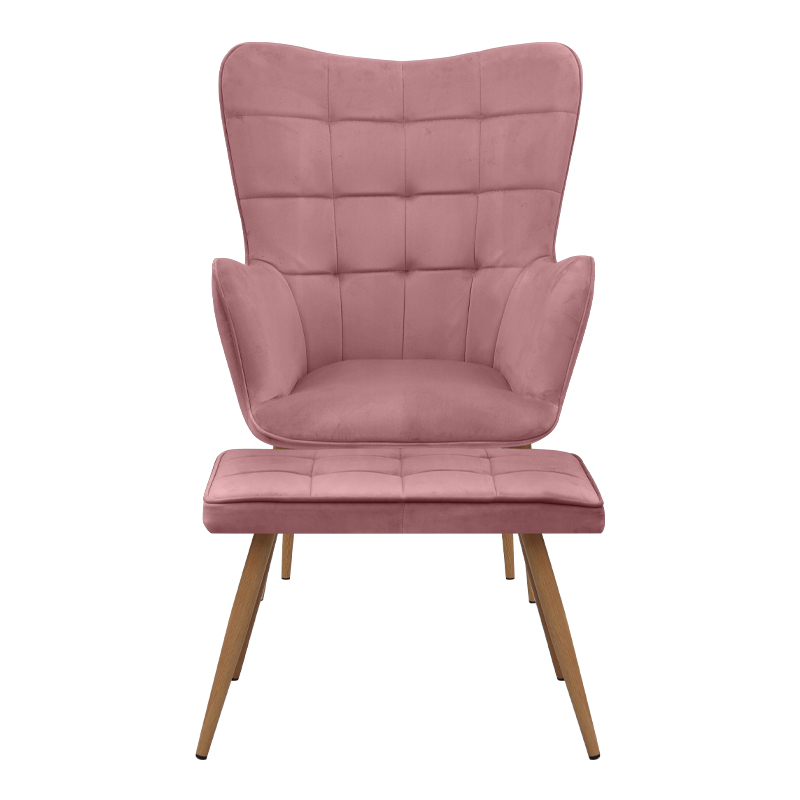 Πολυθρόνα - Μπερζέρα με υποπόδιο Lily σάπιο μήλο βελούδο - μεταλλικό πόδι χρώμα φυσικό 70x62x98εκ.
