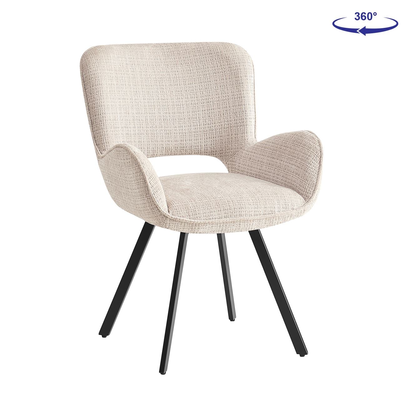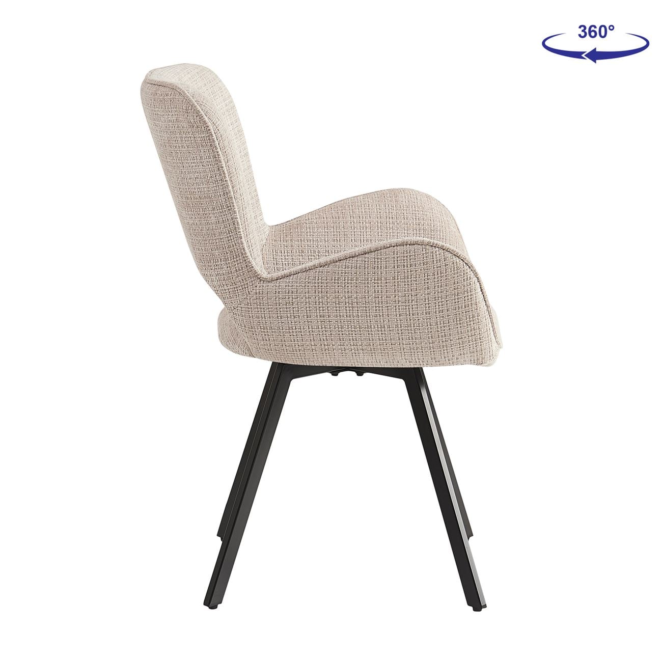 VETA Πολυθρόνα Περιστρεφόμενη, Μέταλλο Βαφή Μαύρο, Ύφασμα Μπεζ