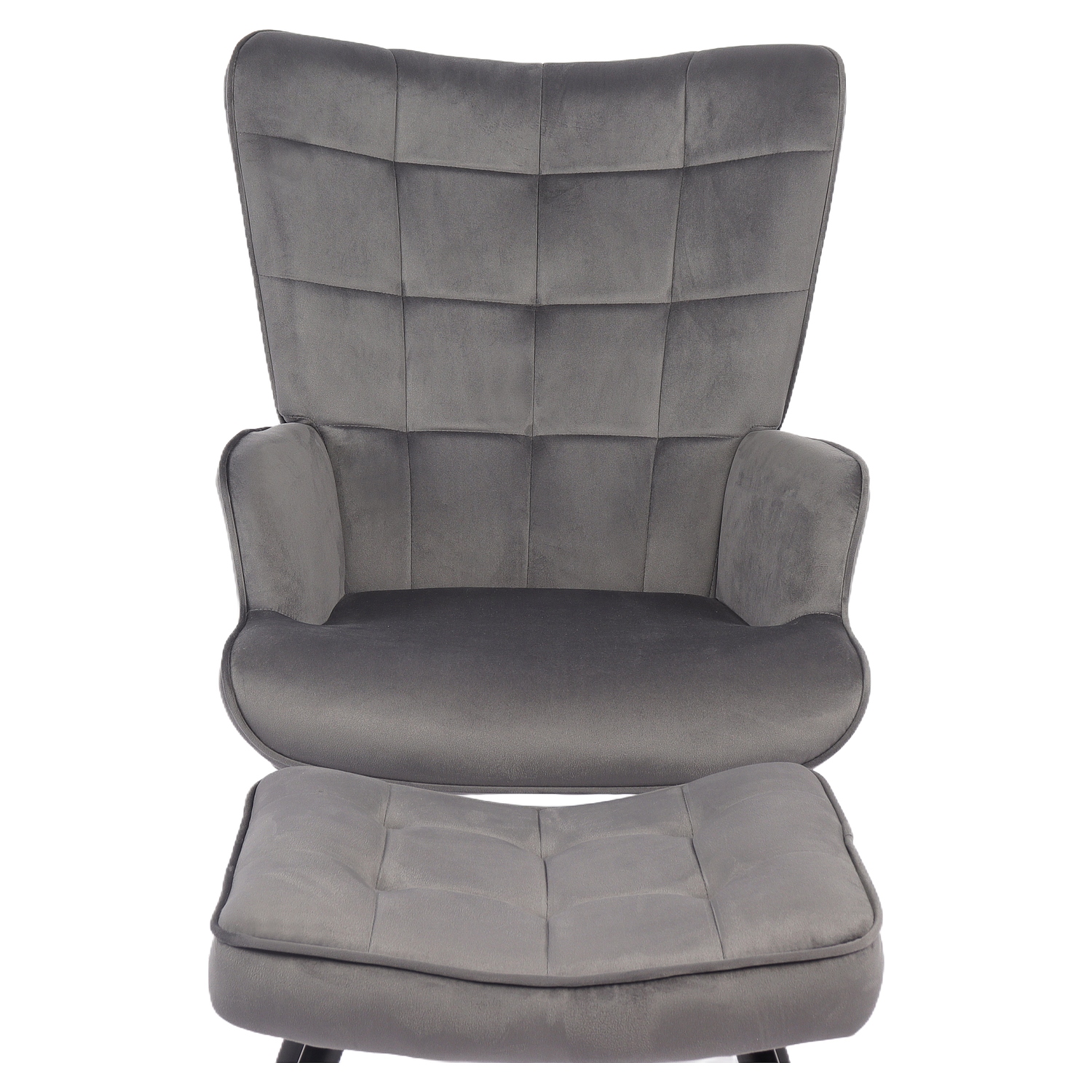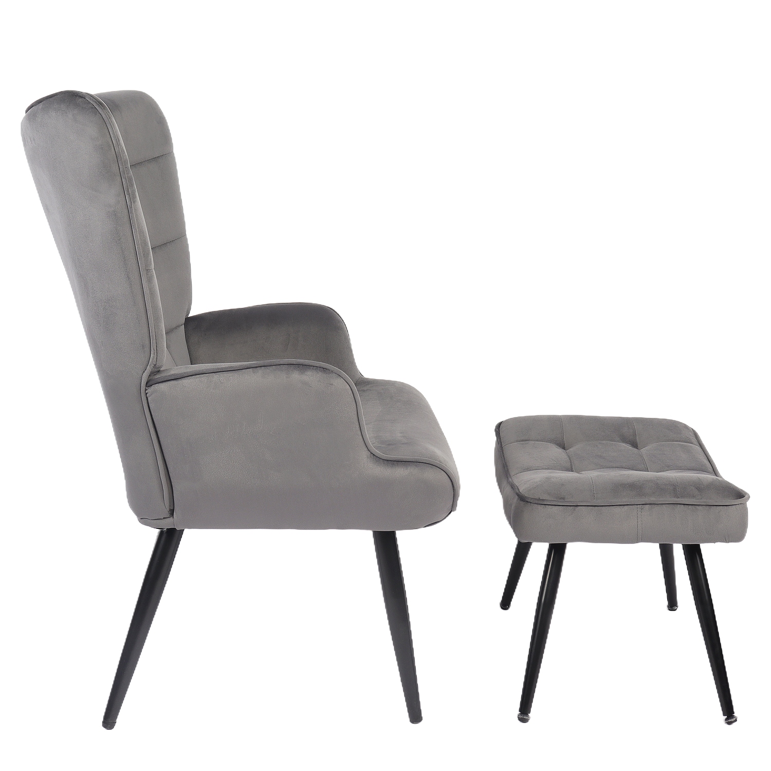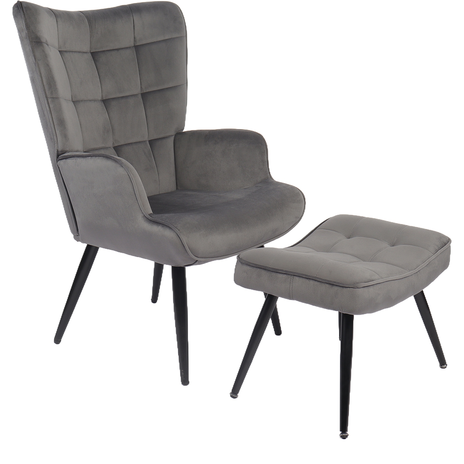 Πολυθρόνα Μπερζέρα Με Υποπόδιο LENNOX Γκρι Βελούδο/Ξύλο 96x68x73cm