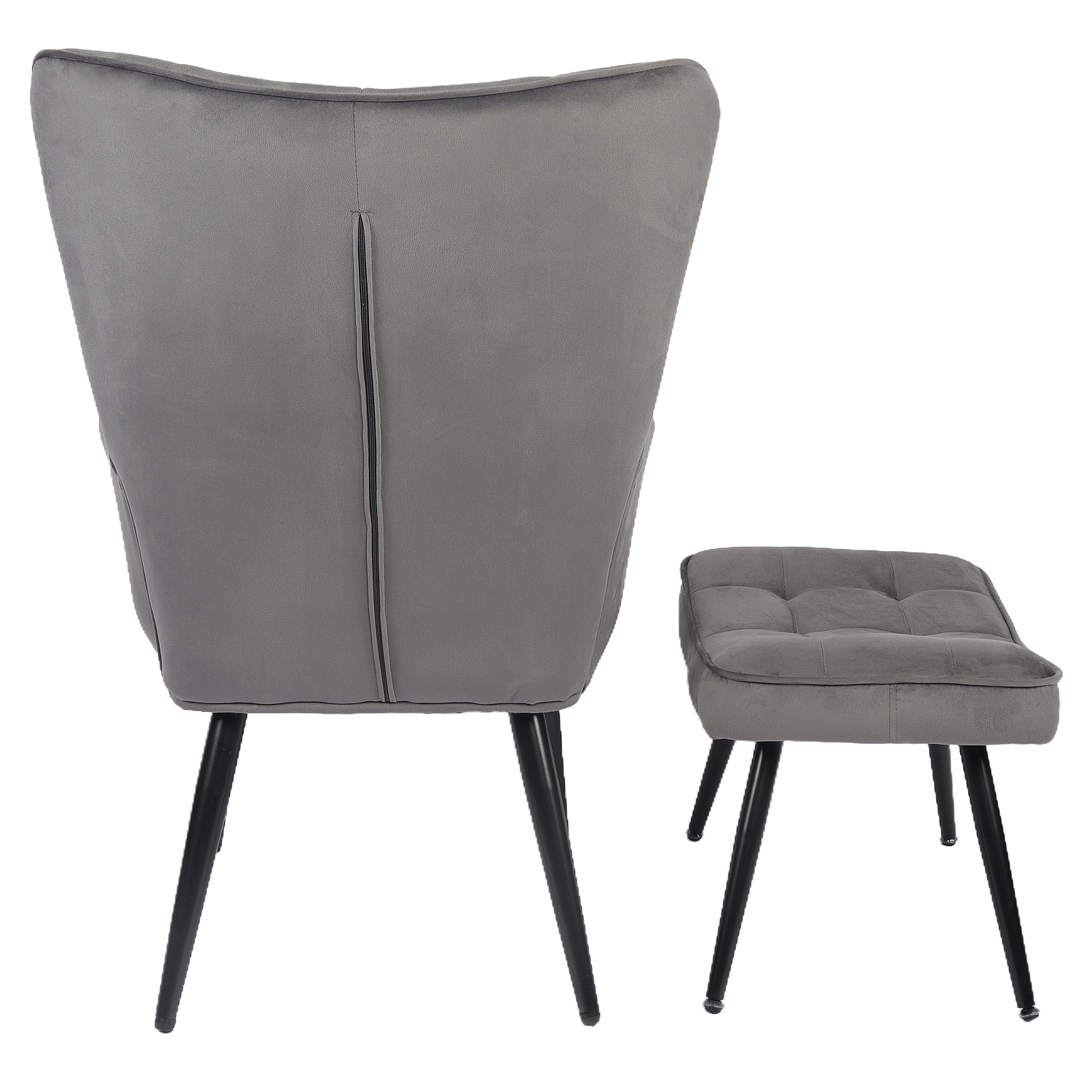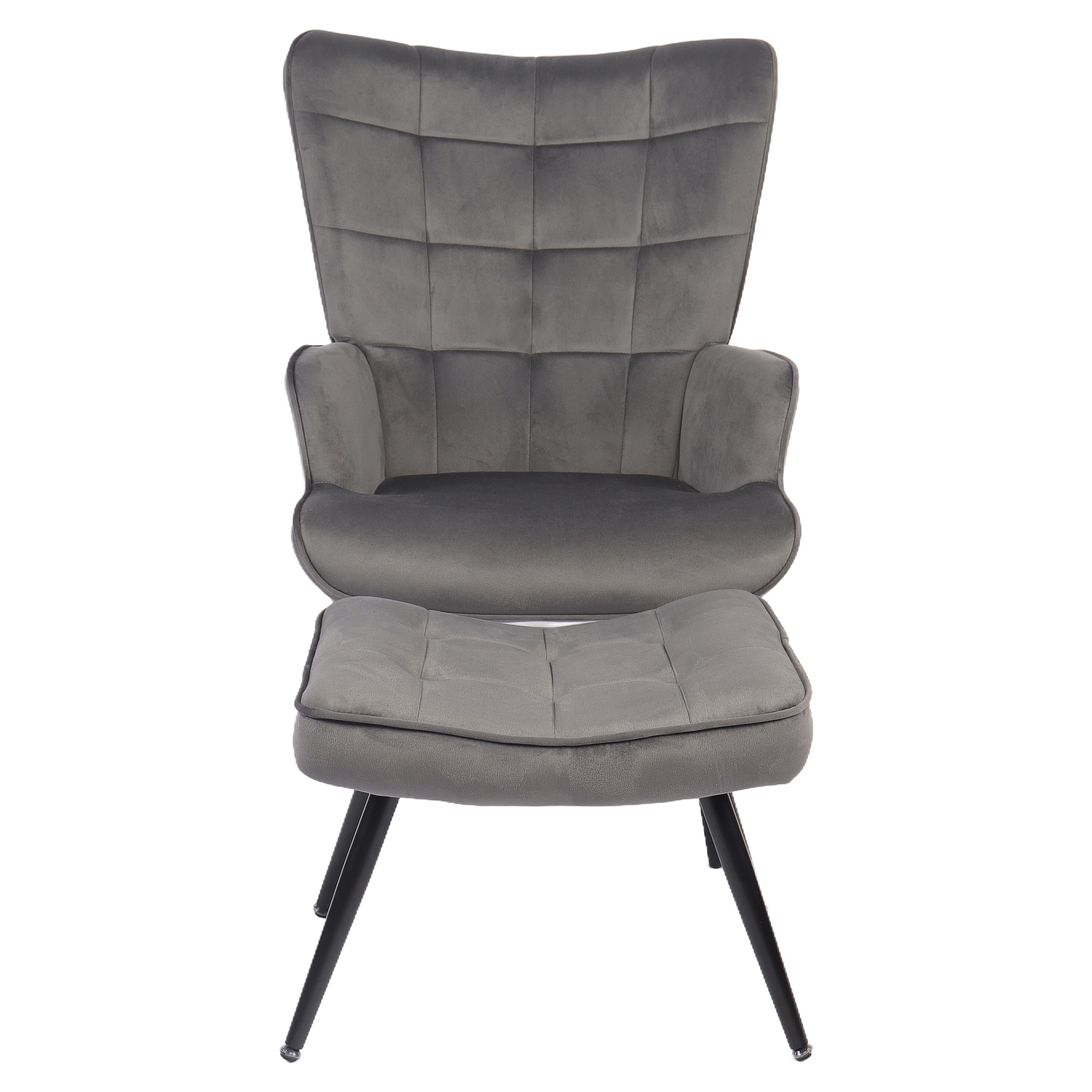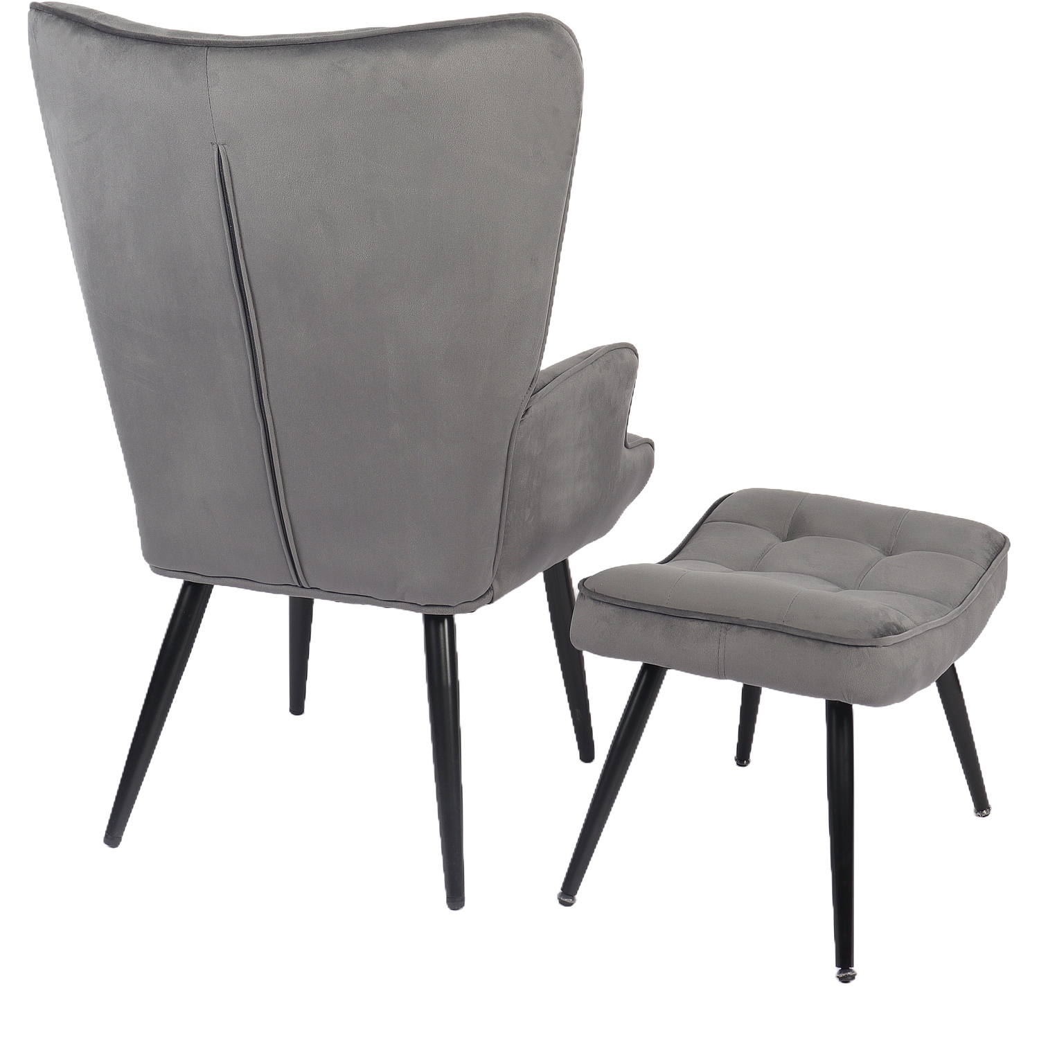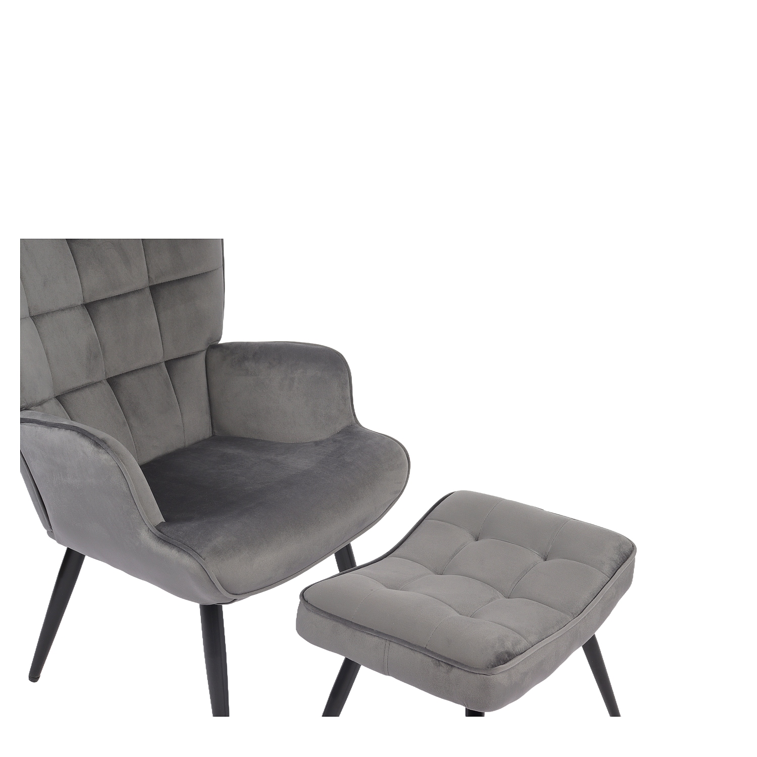 Πολυθρόνα Μπερζέρα Με Υποπόδιο LENNOX Γκρι Βελούδο/Ξύλο 96x68x73cm