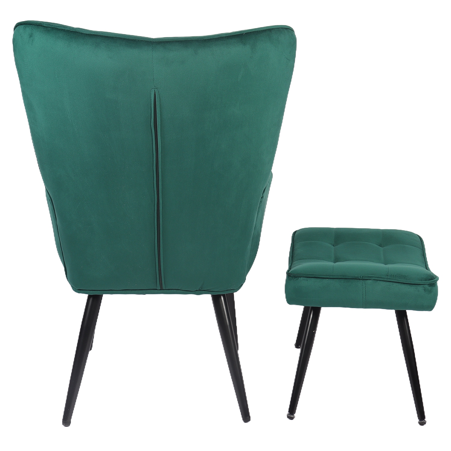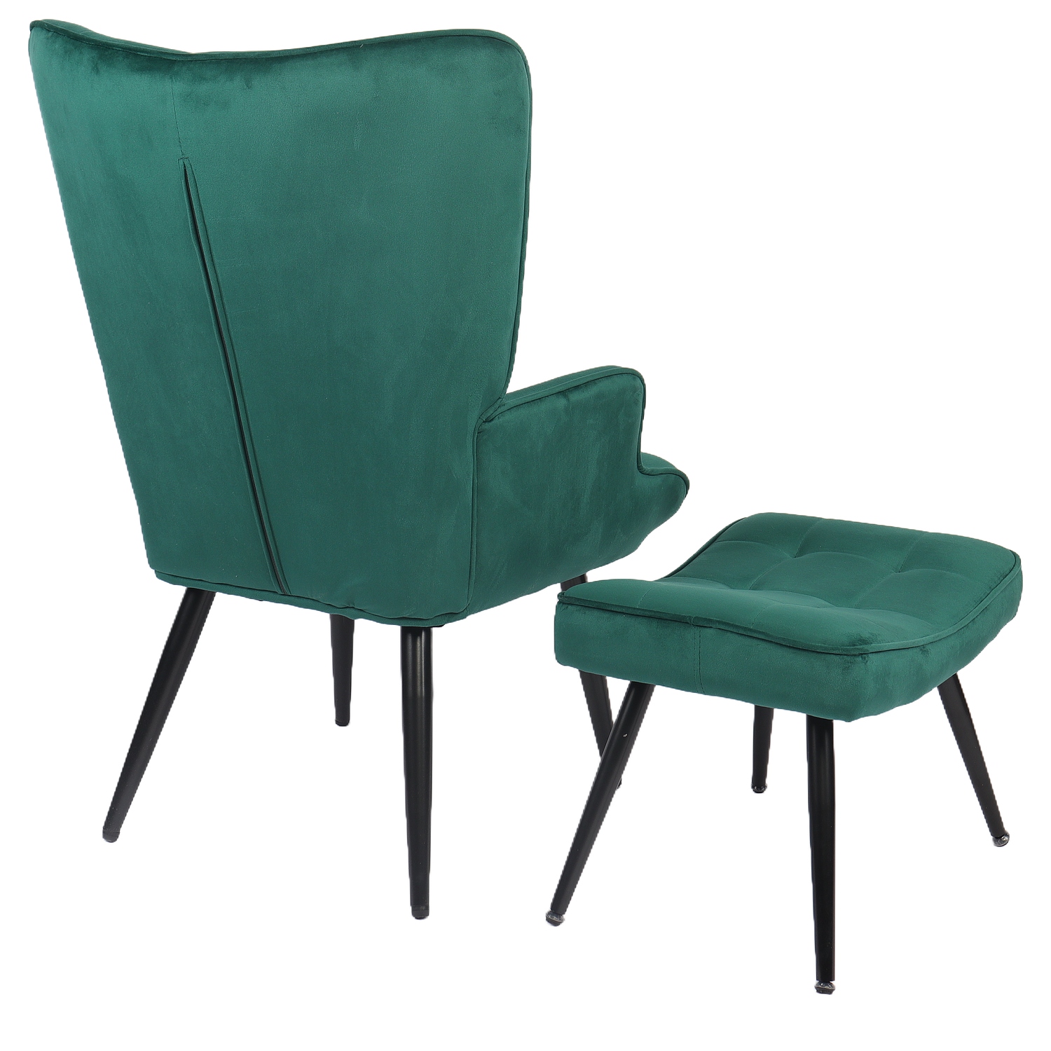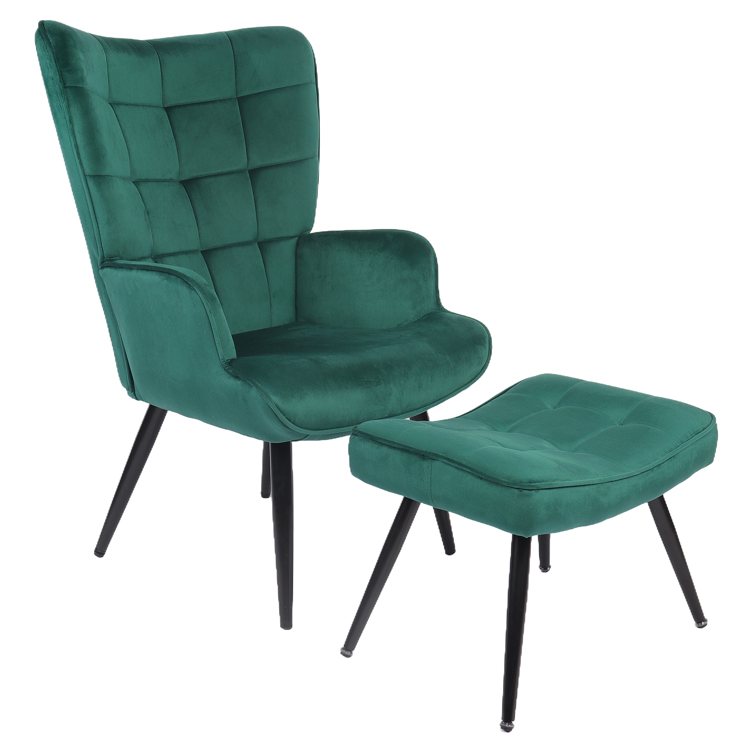 Πολυθρόνα Μπερζέρα Με Υποπόδιο LENNOX Πράσινο Βελούδο/Ξύλο 96x68x73cm