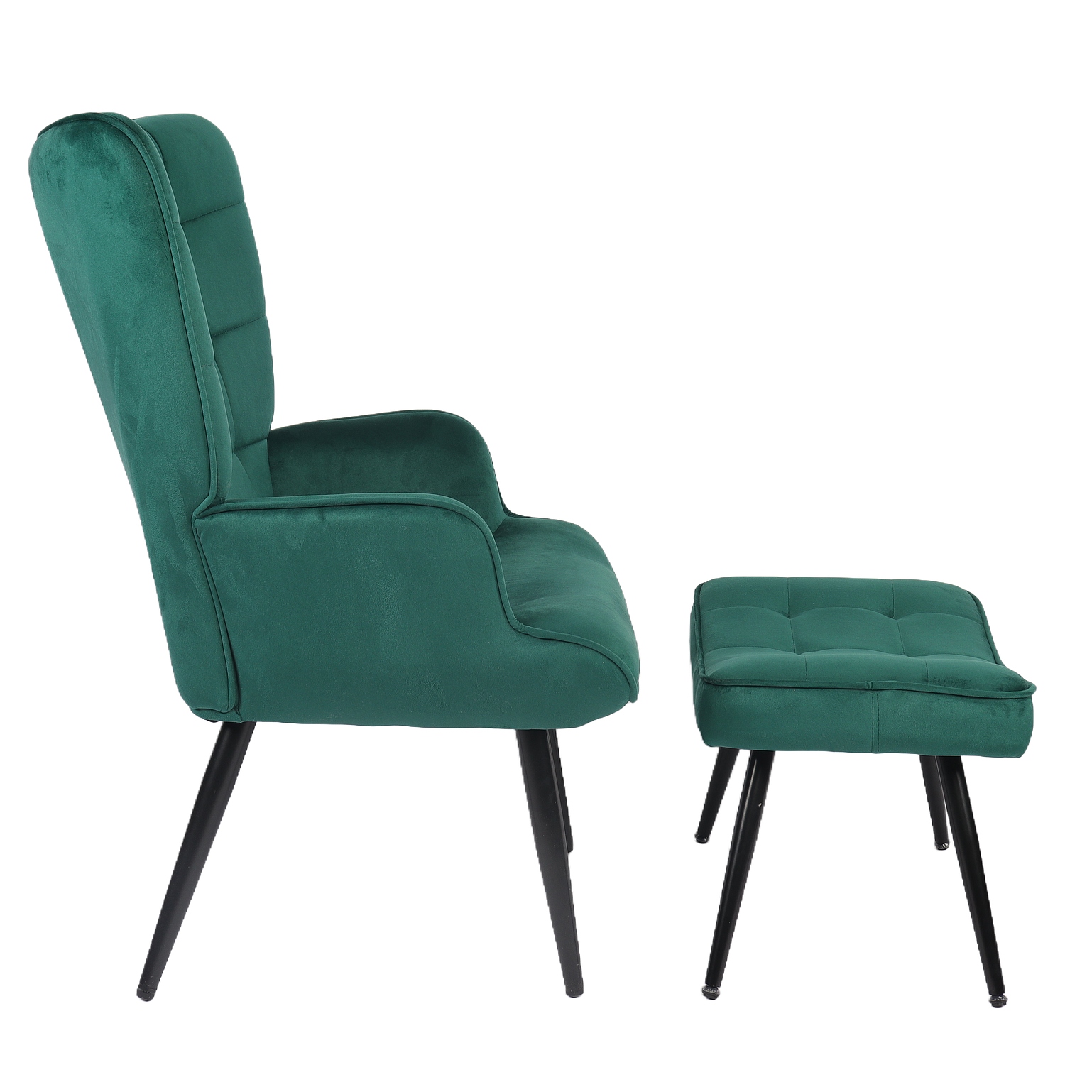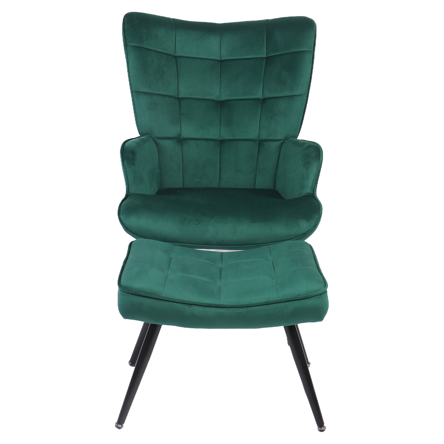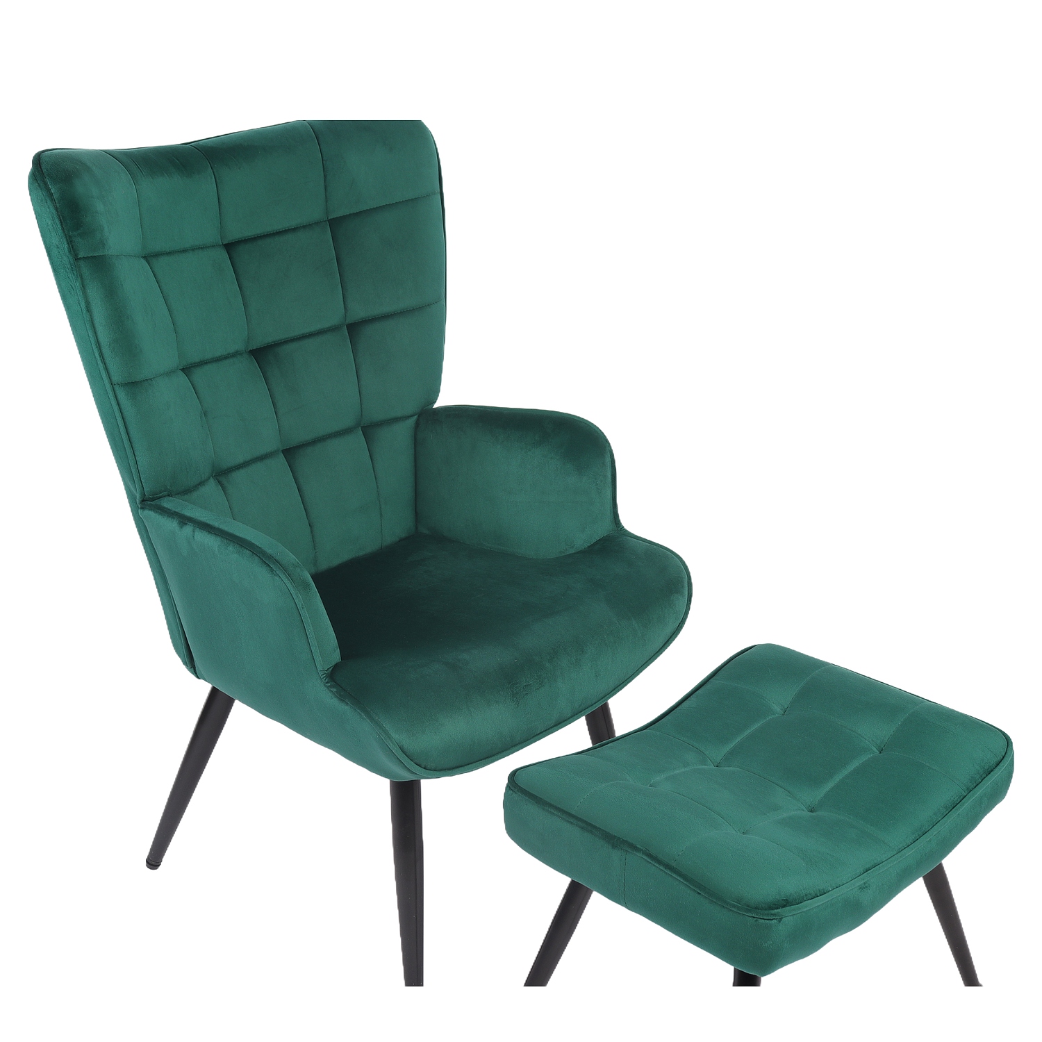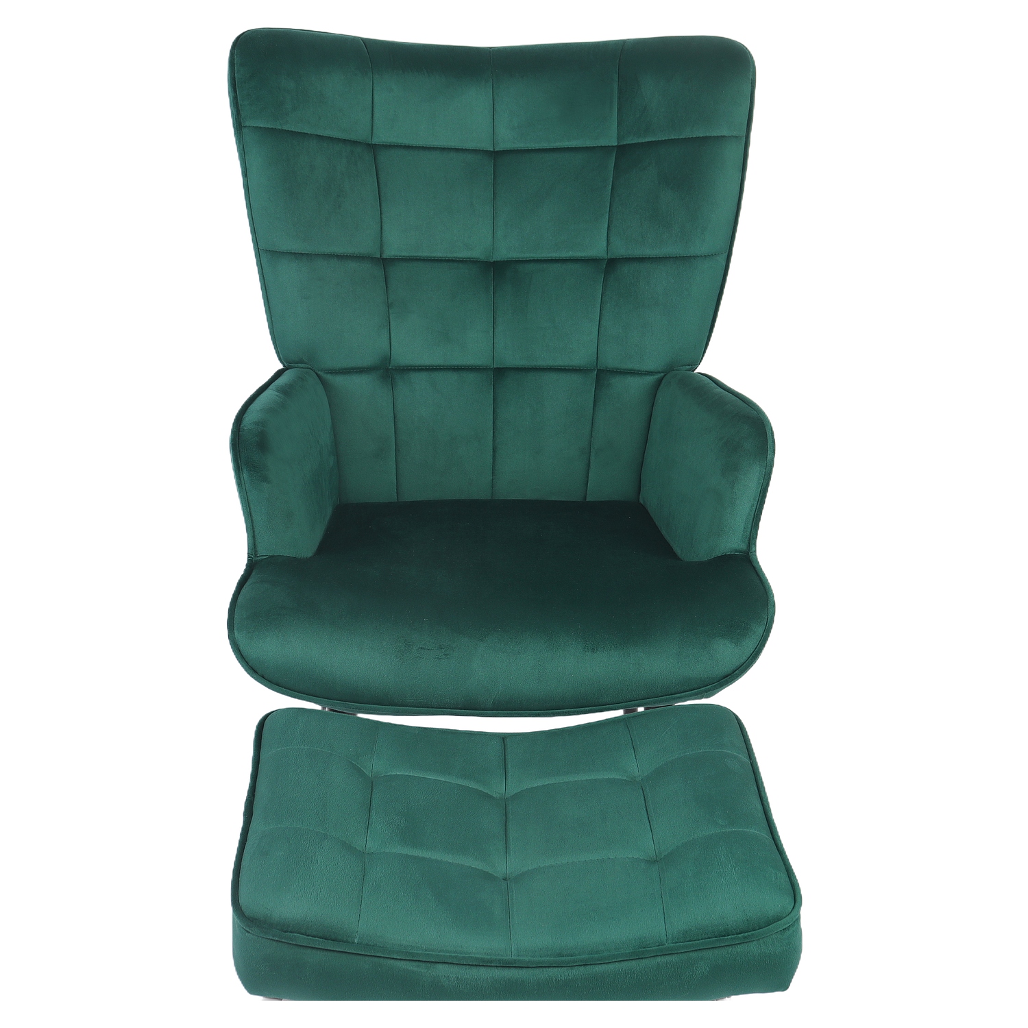 Πολυθρόνα Μπερζέρα Με Υποπόδιο LENNOX Πράσινο Βελούδο/Ξύλο 96x68x73cm