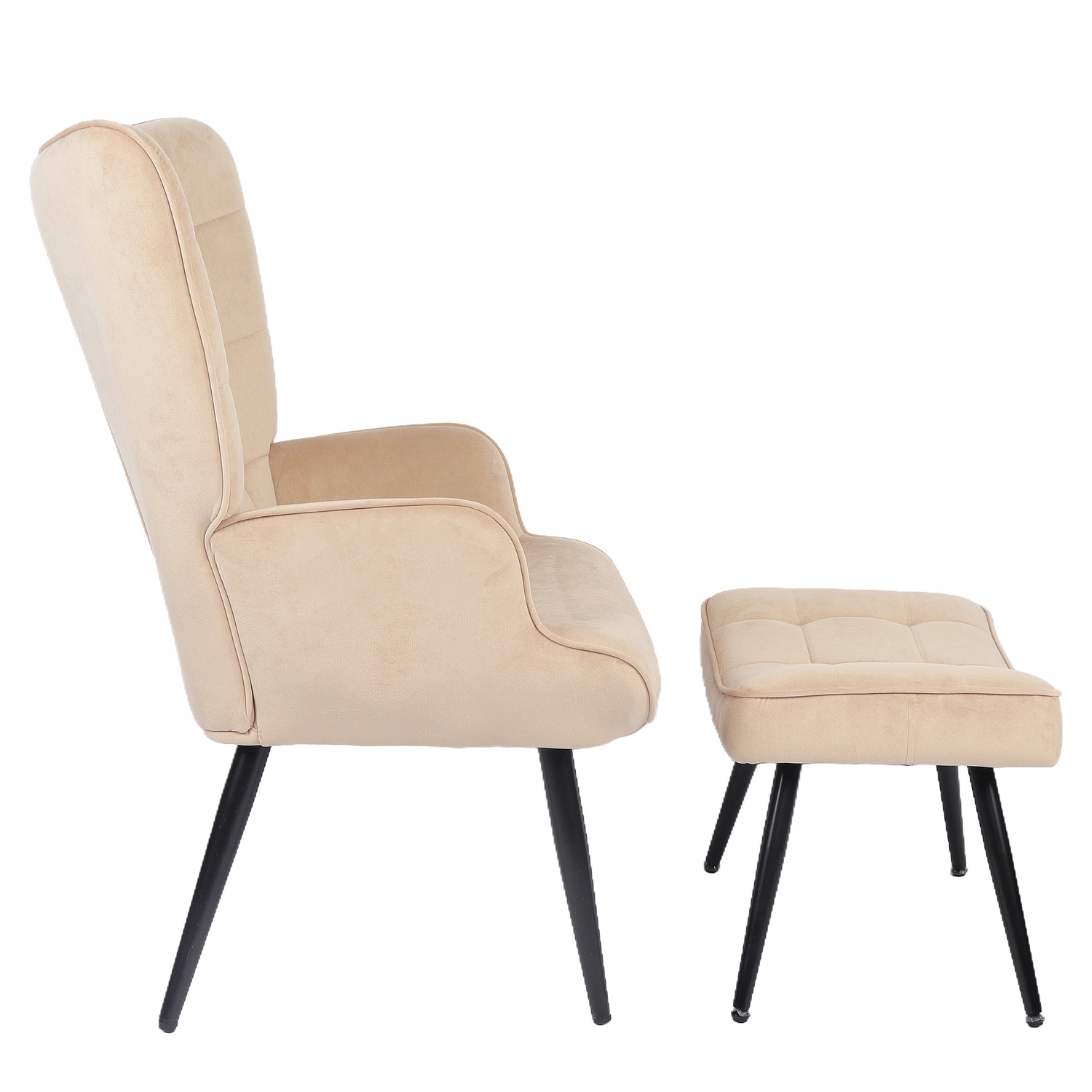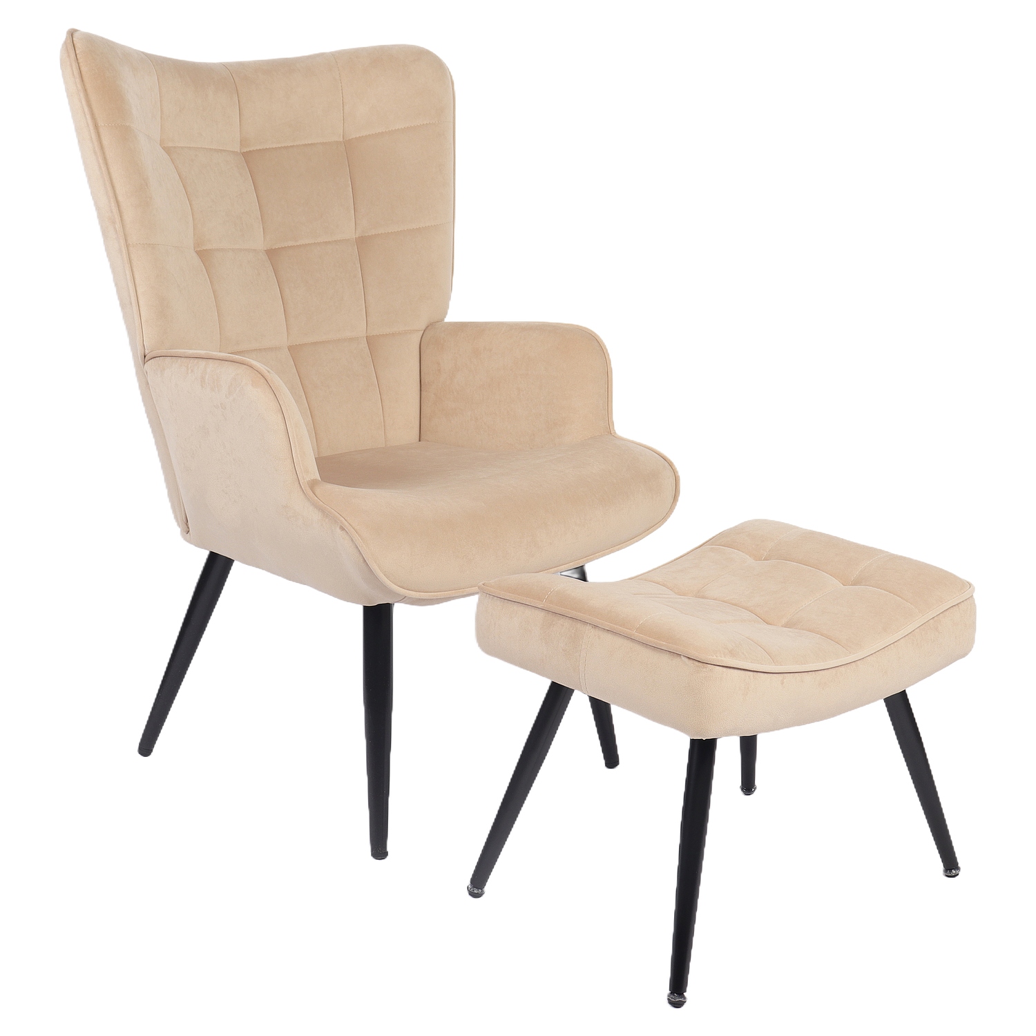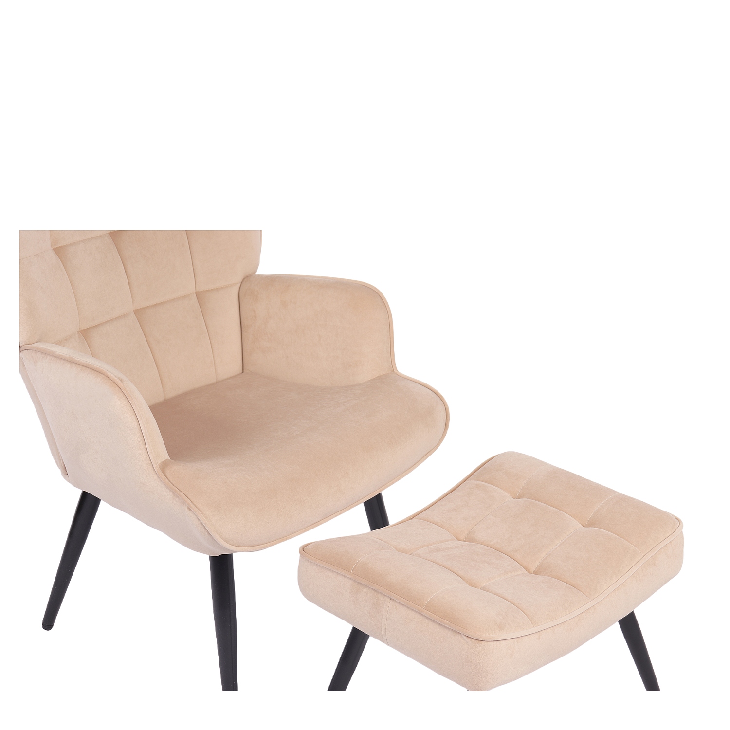 Πολυθρόνα Μπερζέρα Με Υποπόδιο LENNOX Μπεζ Βελούδο/Ξύλο 96x68x73cm
