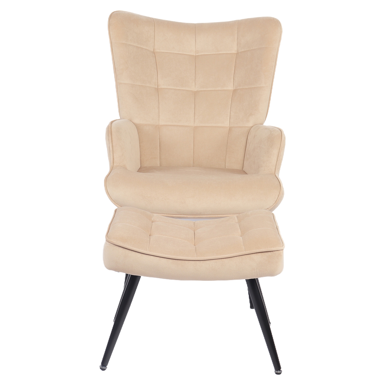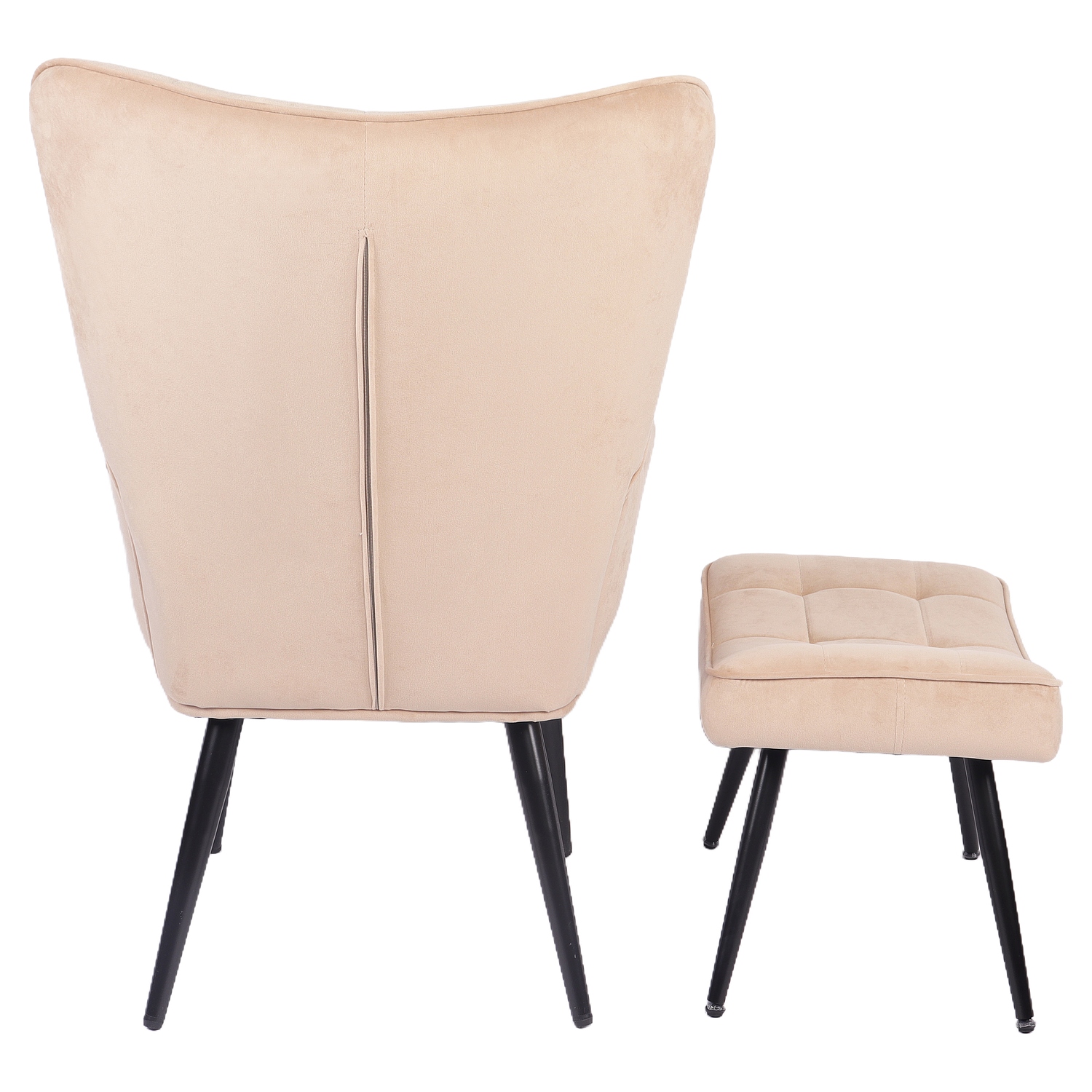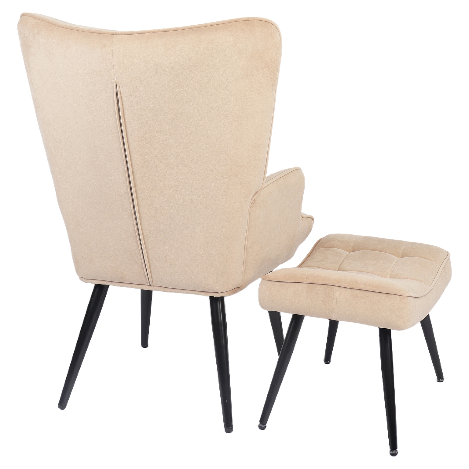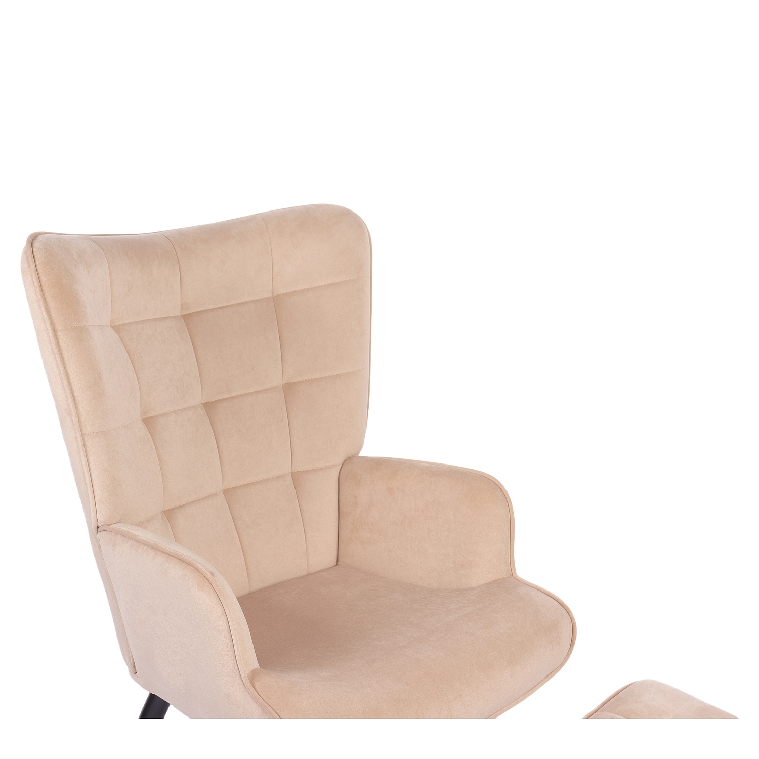 Πολυθρόνα Μπερζέρα Με Υποπόδιο LENNOX Μπεζ Βελούδο/Ξύλο 96x68x73cm