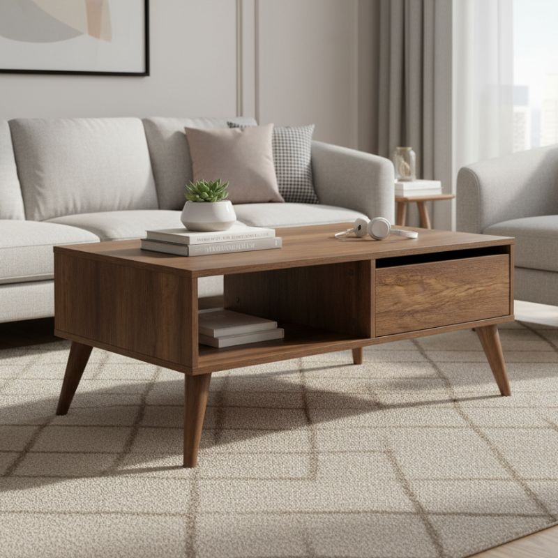 Τραπεζάκι σαλονιού Slide χρώμα καρυδί 110x65x42εκ.