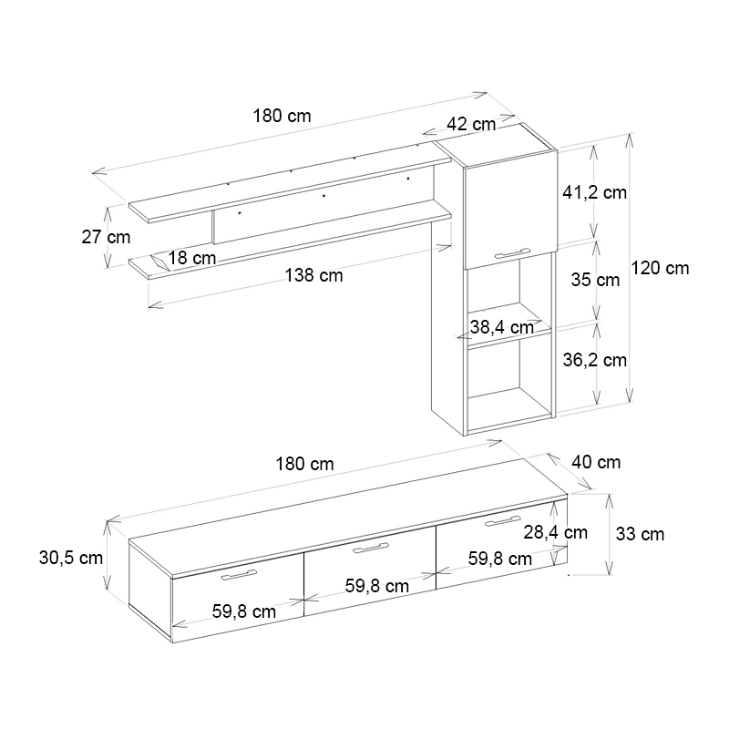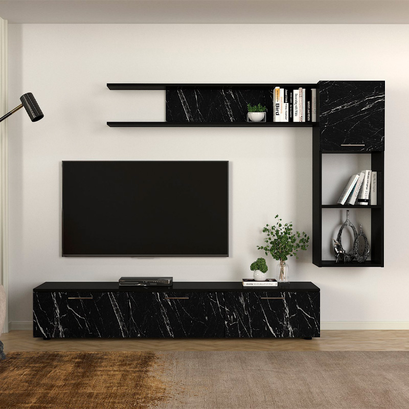 Σύνθεση τηλεόρασης Darcy χρώμα μαύρο εφέ μαρμάρου - μαύρο 180x40x33εκ.