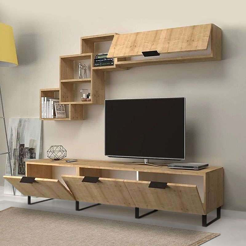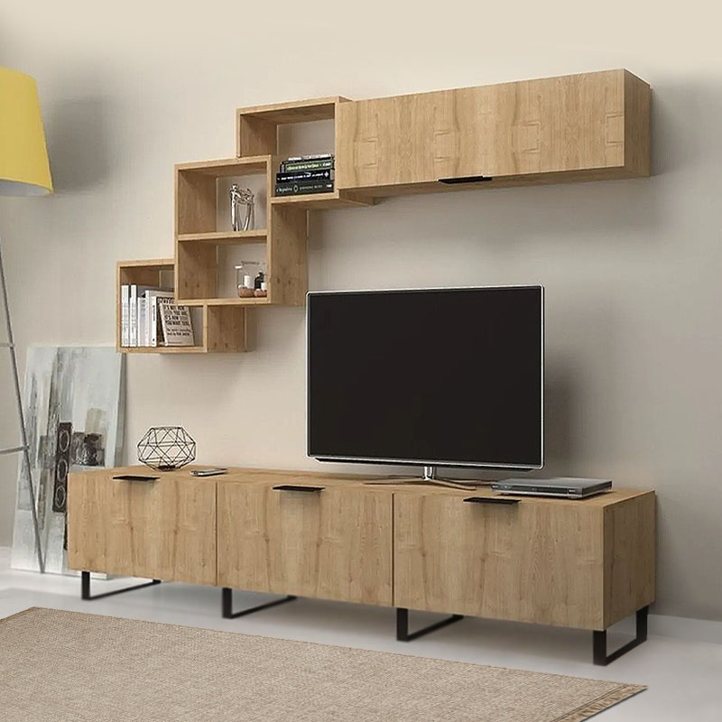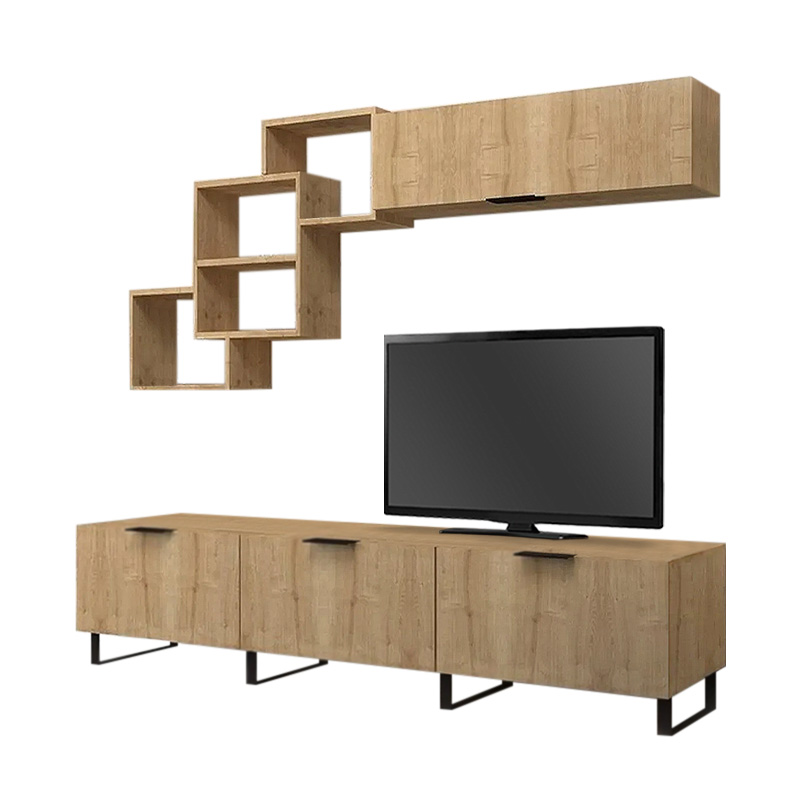 Σύνθεση τηλεόρασης Heydar χρώμα φυσικό οξιάς 210x35x50εκ.