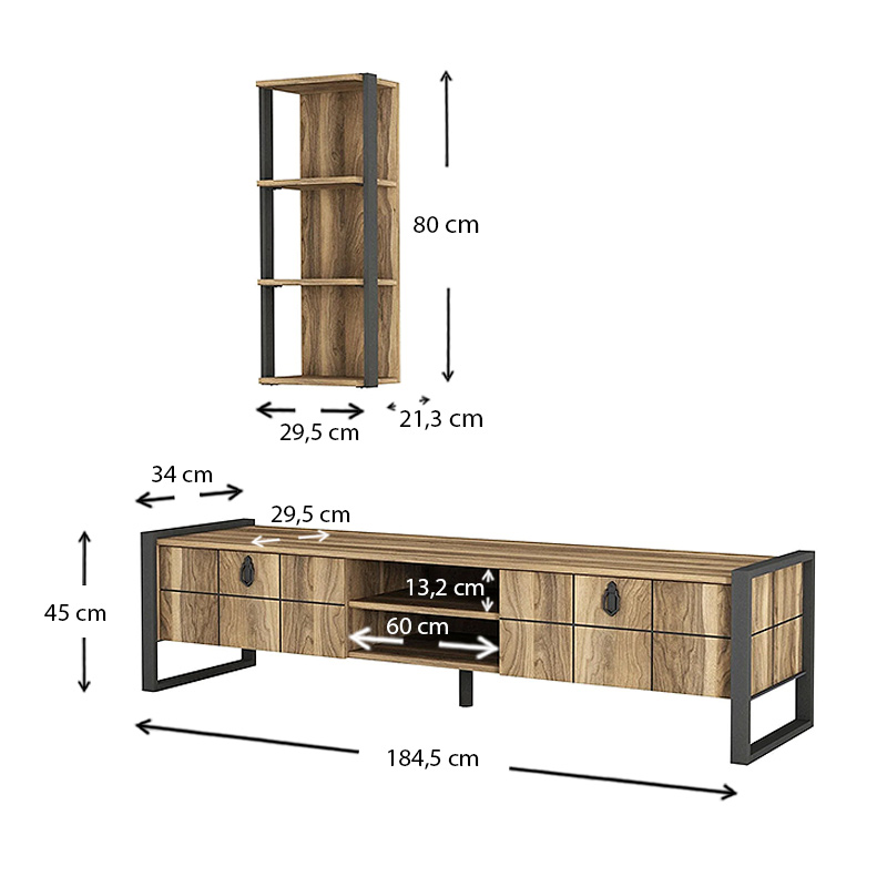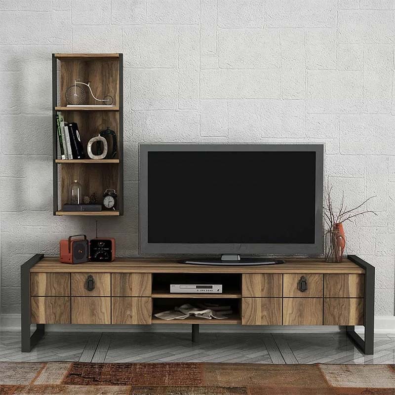 Σύνθεση τηλεόρασης Ursula χρώμα καρυδί - μαύρο 184,5x34x45εκ.
