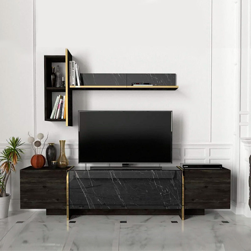 Σύνθεση τηλεόρασης Veyron χρώμα μαύρο rebab - μαύρο εφέ μαρμάρου 180x33x45εκ.
