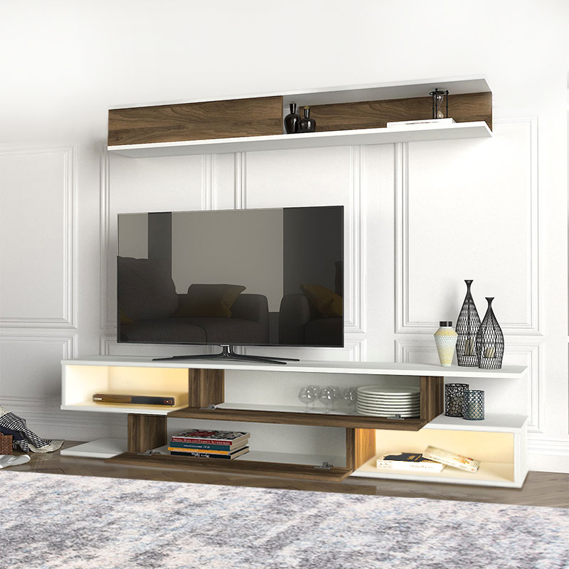 Σύνθεση τηλεόρασης Manet με LED χρώμα λευκό - καρυδί 180x29,5x39εκ.